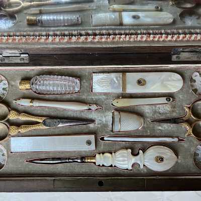 Sewing Box, Tortoiseshell Veneer, Gilt Metal Tools