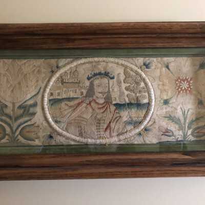 Queen and tent stitch needlework picture