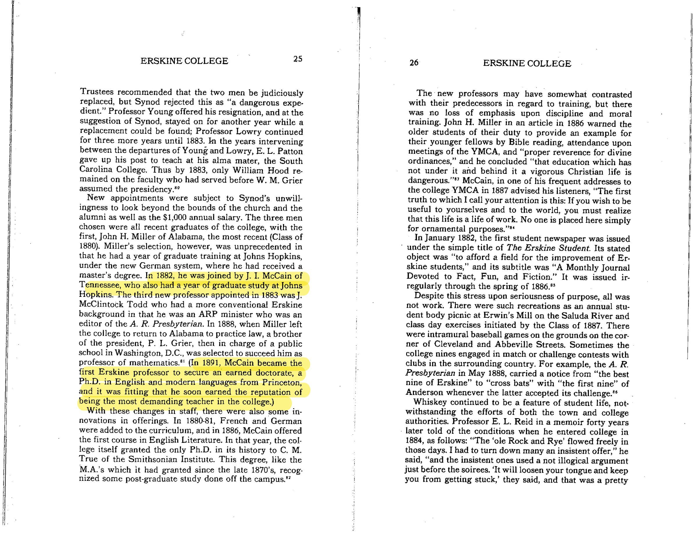 J.I. McCain - Excerpts from A History of Erskine College 1839 - 1982Description