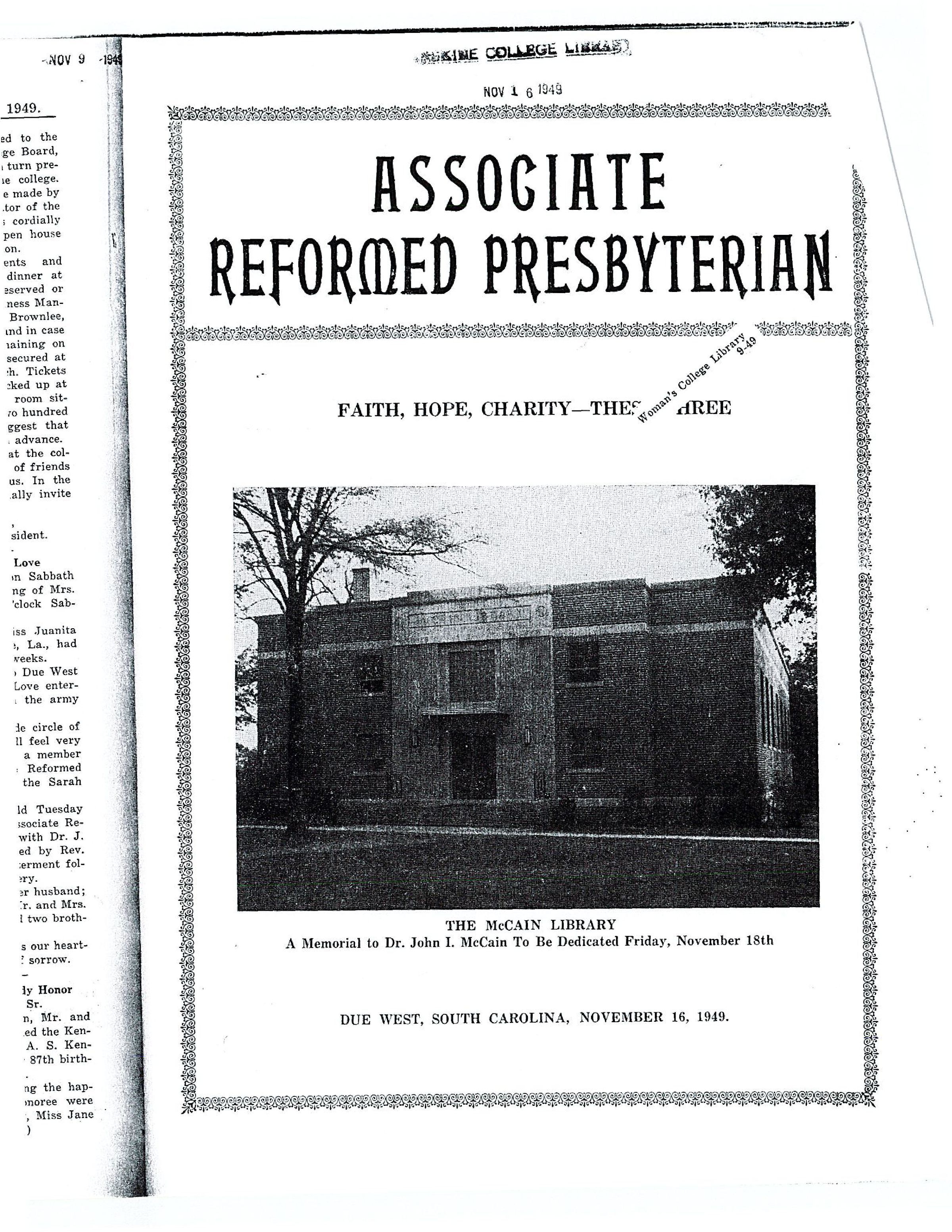 November 18 Is Date of Dedication Program - article published in Associate Reformed PresbyterianDescription
