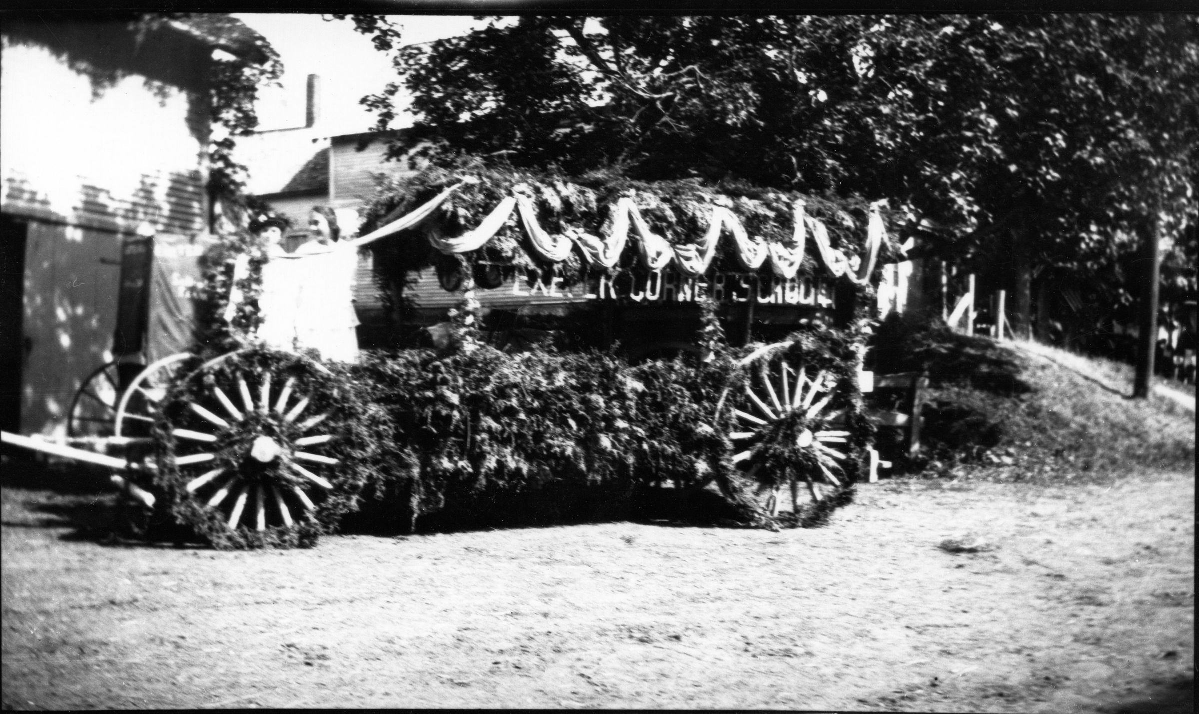 Exeter Corner School parade float. Possibly during the celebration of Maine's Centennial, 1920.