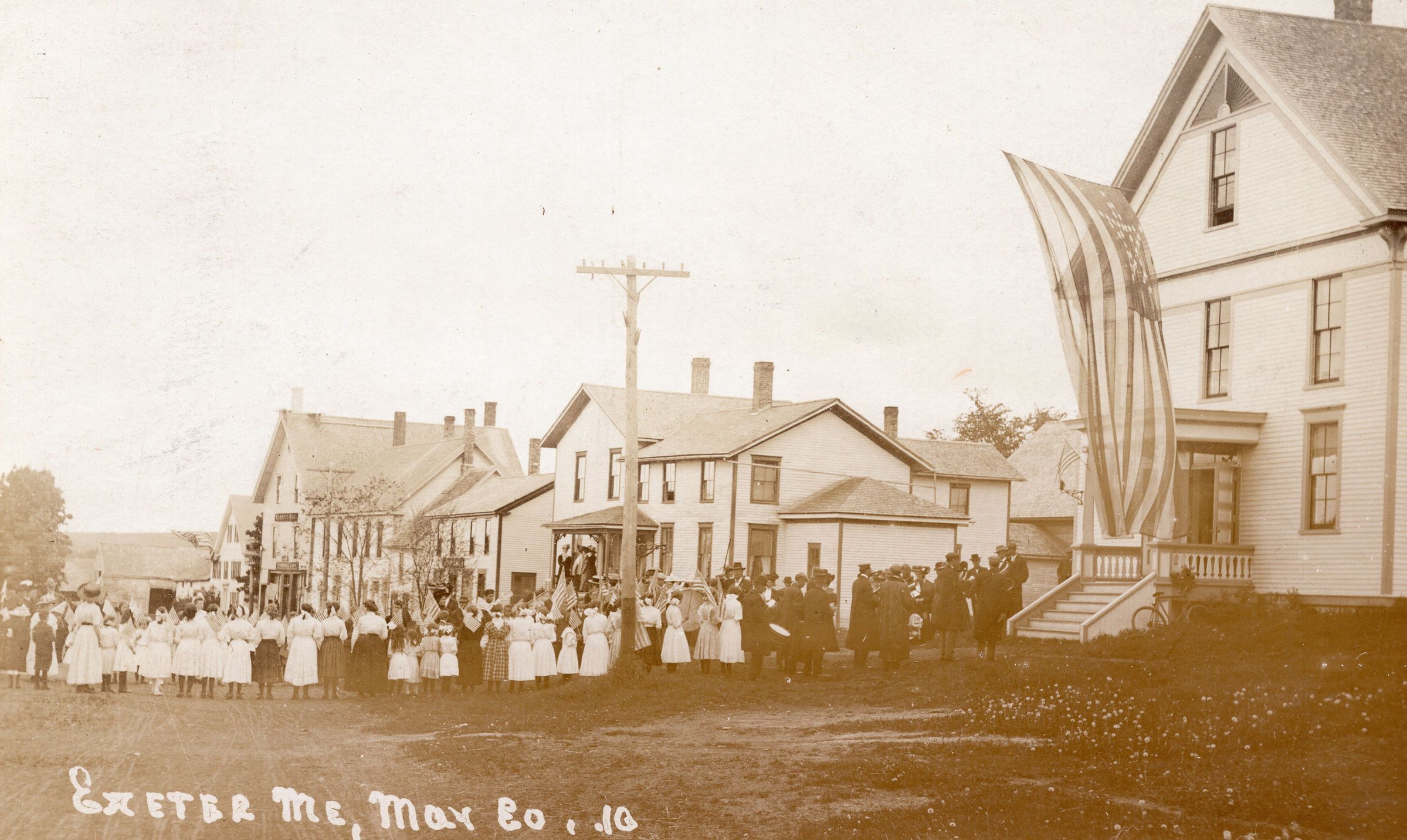 Memorial Day Celebration in Exeter Corners in front of the Hill's Opera House, looking westPhotograph Details