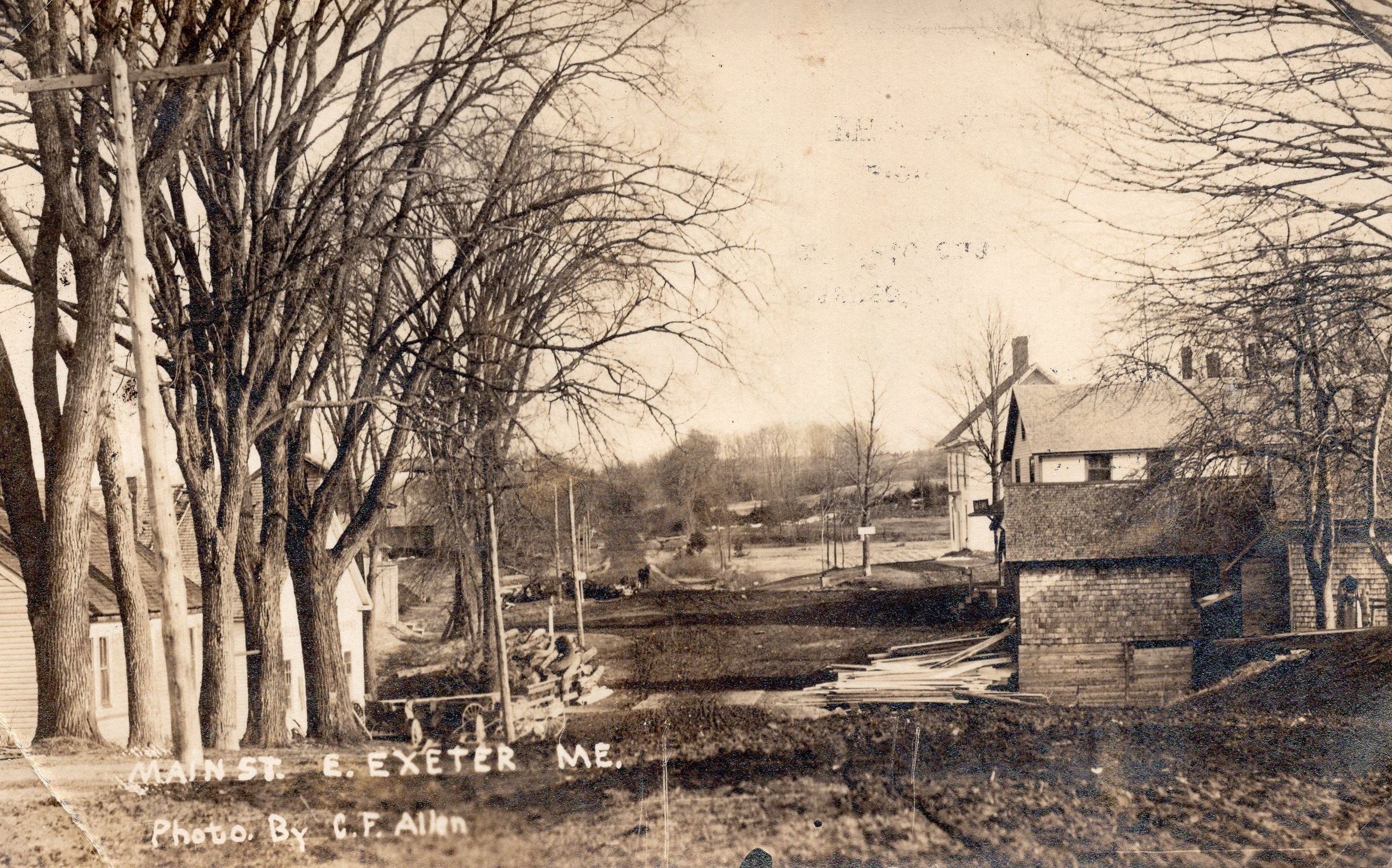 East Exeter Village looking east down Main Street. Mill on right. Year unknown.Photograph Details