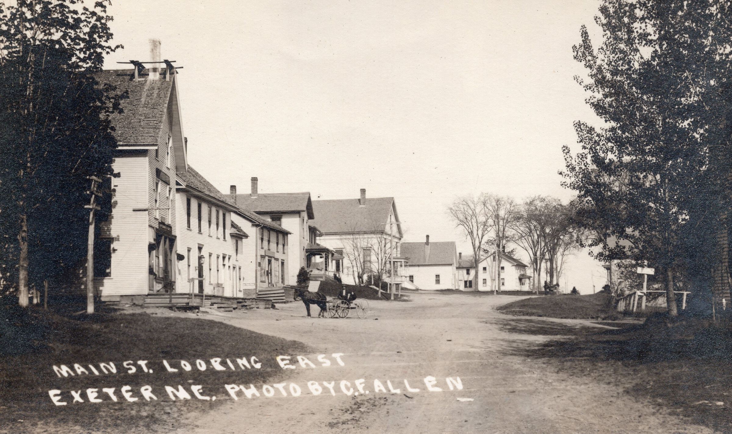 Exeter Corner looking East. Showing businesses and houses.
