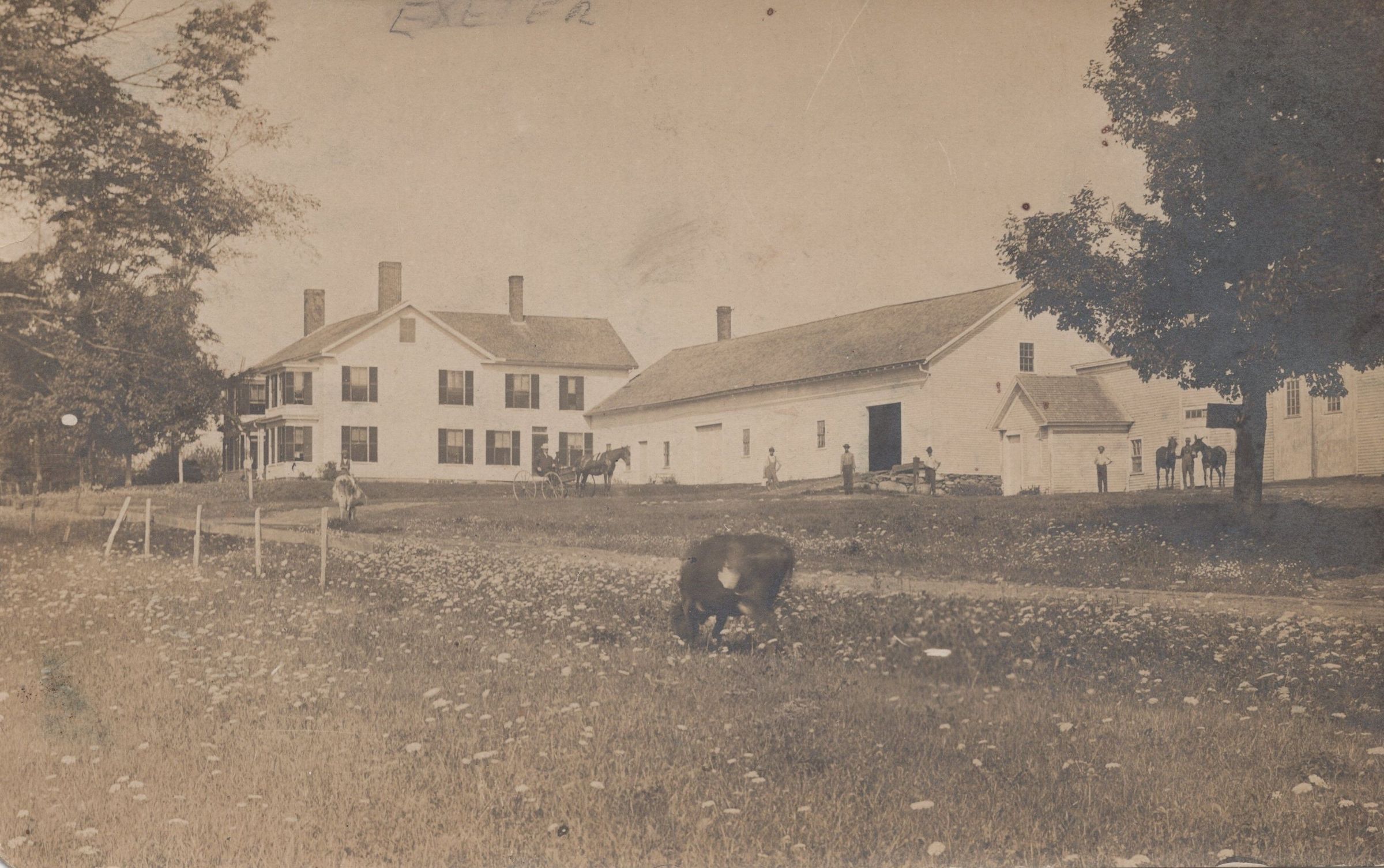 Francis Hill came to Exeter from Castine in the fall of 1813. He started building part of this house in 1829, and finished a barn in 1834. At the time of his death , the farm consisted of 300 acres.