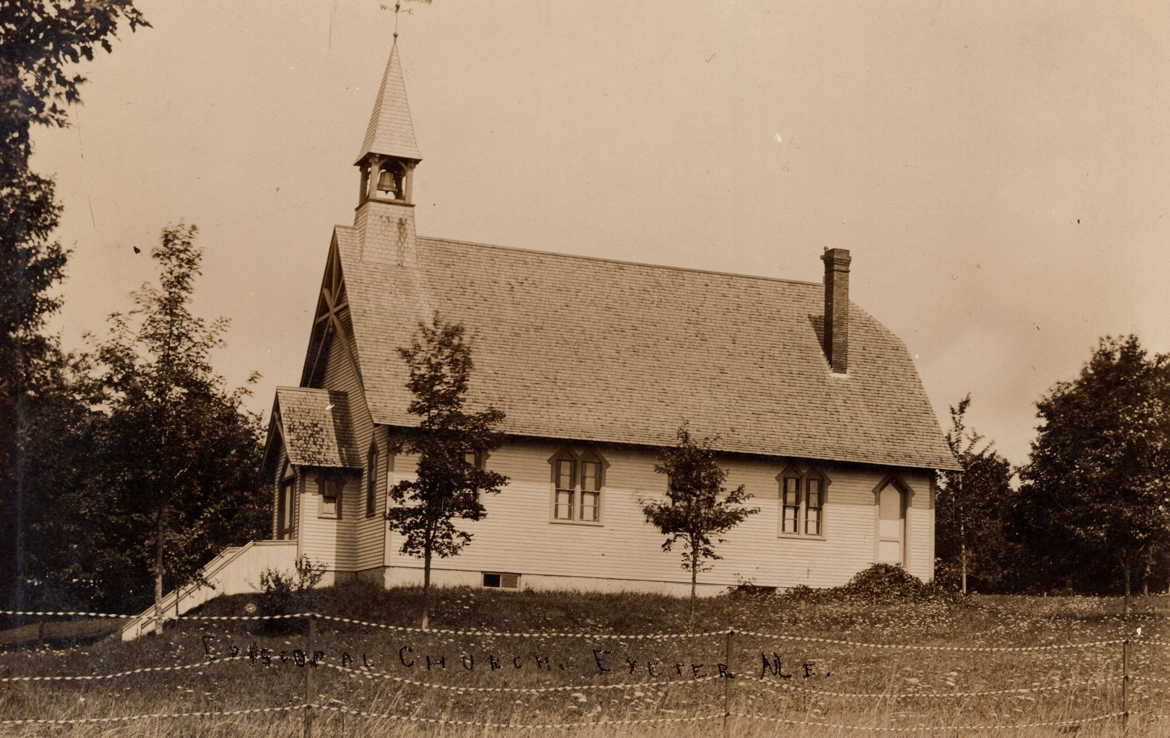 The cornerstone of the Episcopal church in Exeter, under the name of “Holy Trinity” was laid July 8, 1874 by Rev. Richard Price. The church was consecrated by the Rev. H. A. Neely, Bishop of the Diocese on December 7, 1875. Rev. Price died in September 1875 before its completion. He is one of the individuals buried in the private graveyard at the east end of the church.
