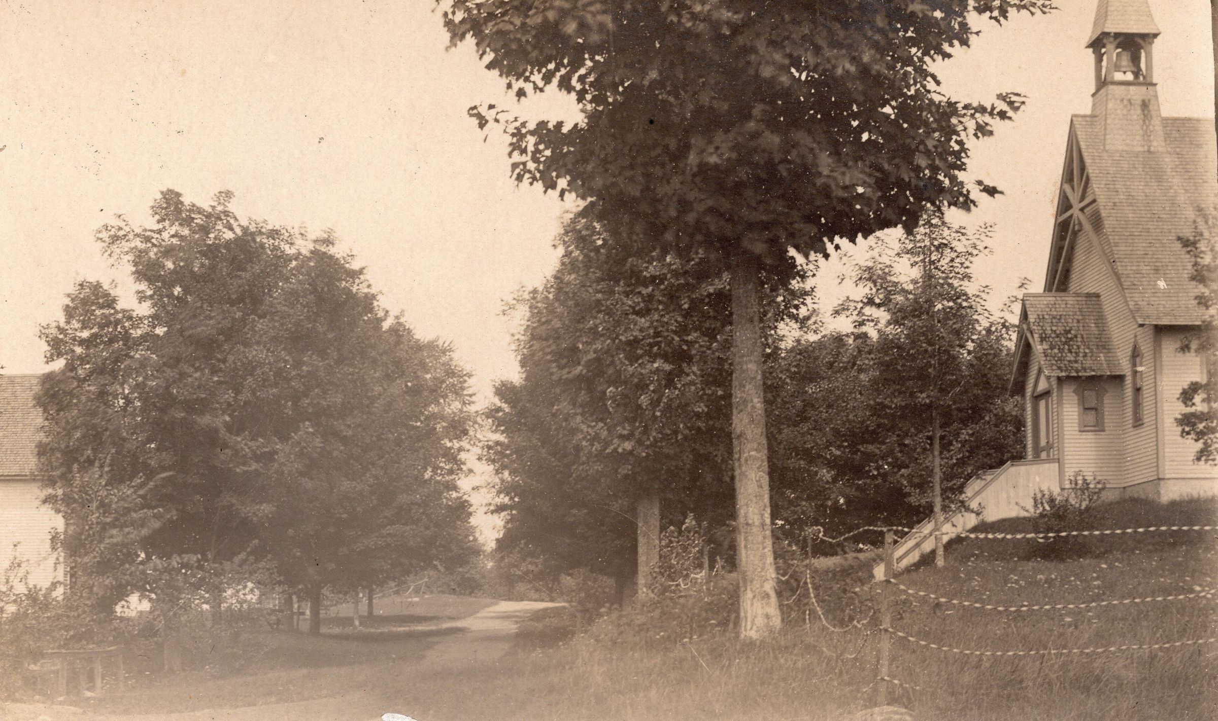 Holy Trinity Church showing it's main entrance (west facing) and the Church Road. Church was consecrated by the Rev. H. A. Neely, Bishop of the Diocese on December 7, 1875.