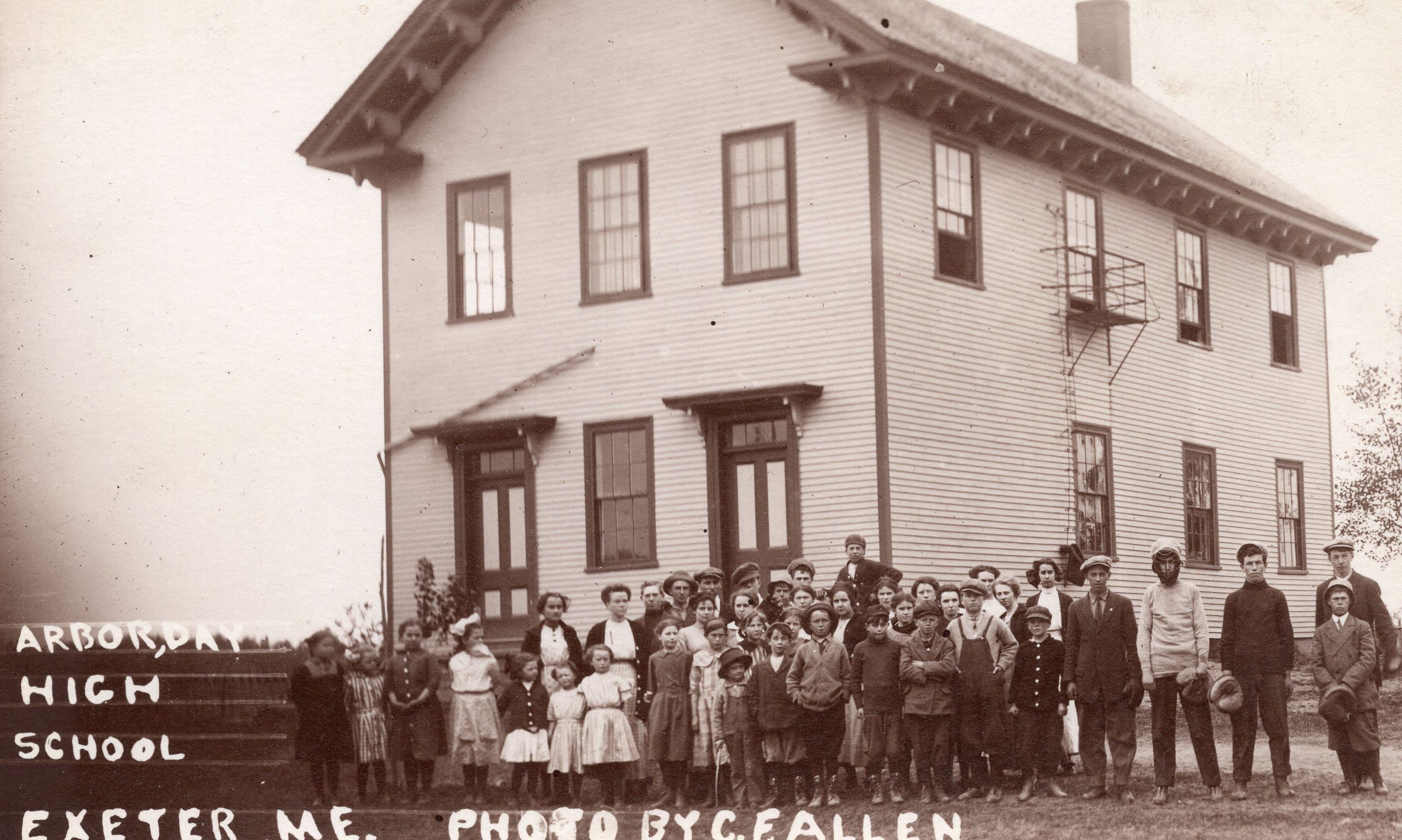 Exeter High School and School Dist. 3 on Arbor Day c. 1910