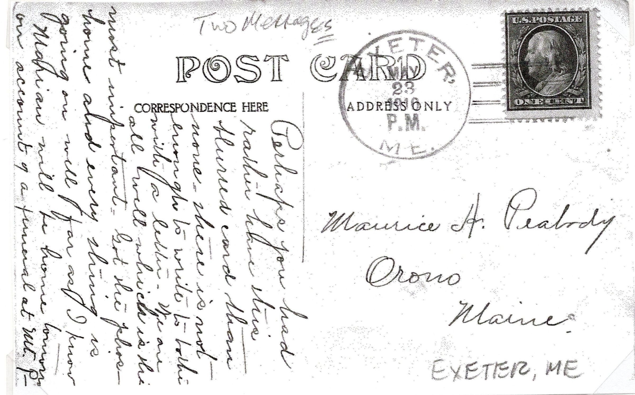 Post Card to Maurice Peabody