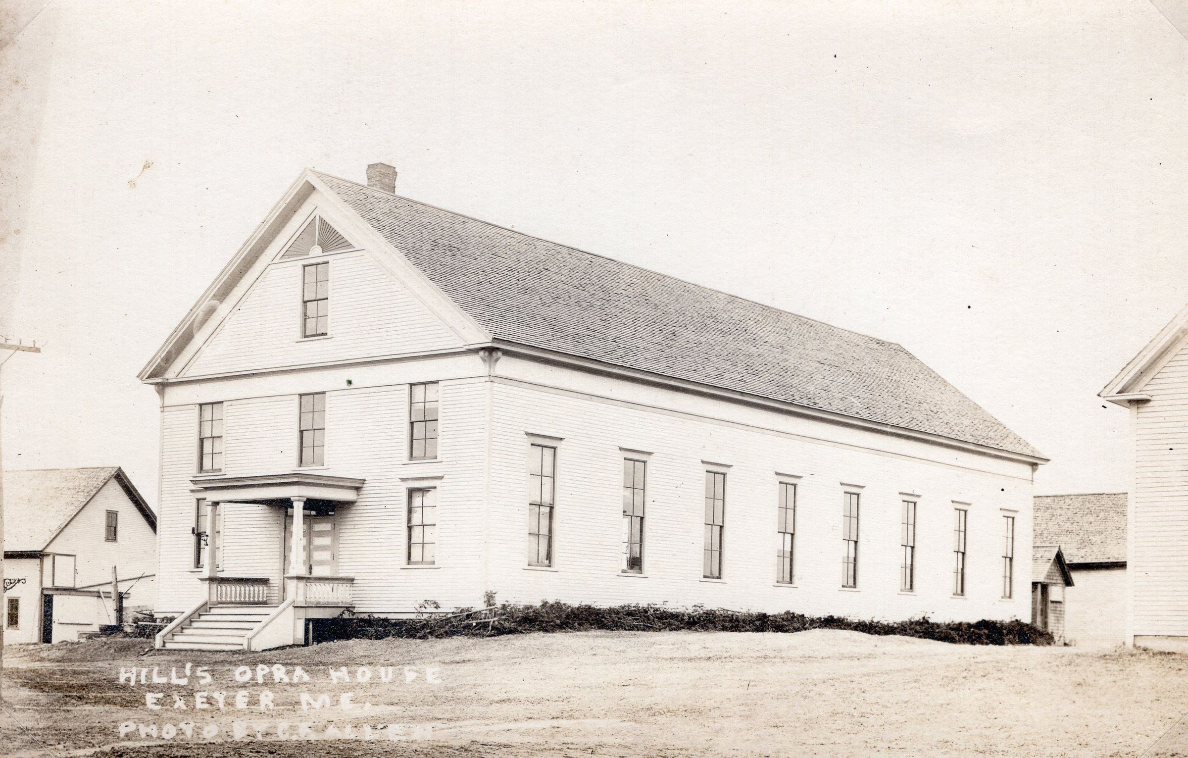 Hill's Opera House. Built 1894, demolished mid-1940s. View of front and east side of building.Photograph Details