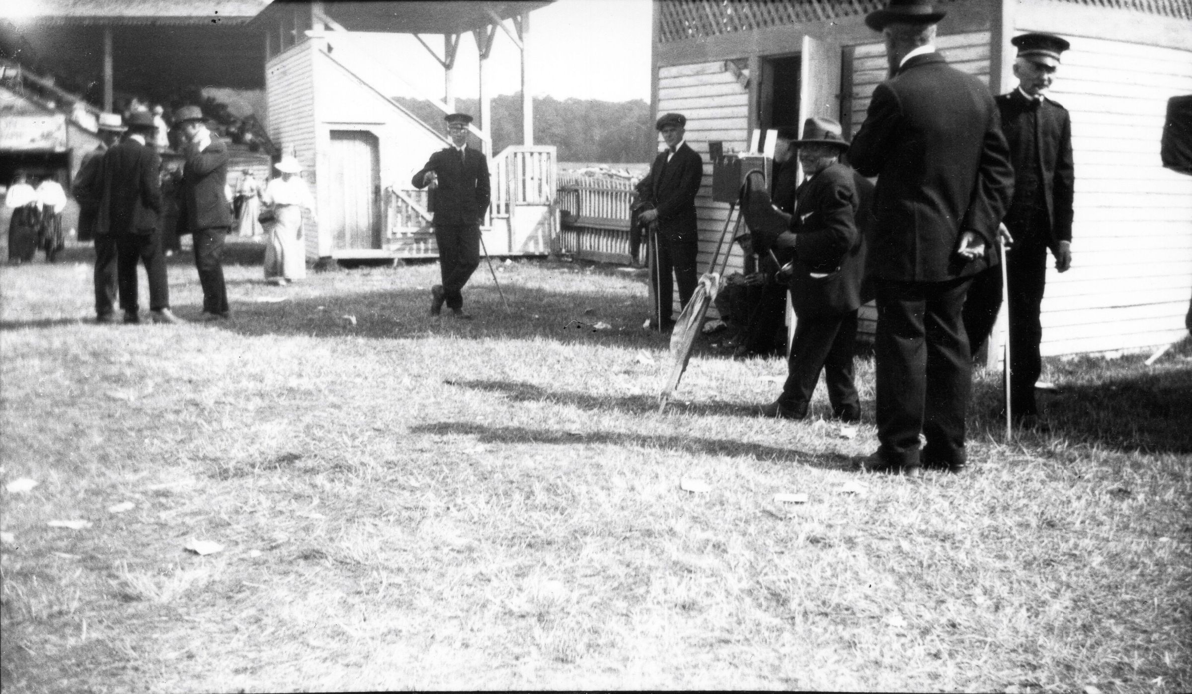 Photographer who was taking a photograph of the band member outside the bandstand at the Exeter Fair.