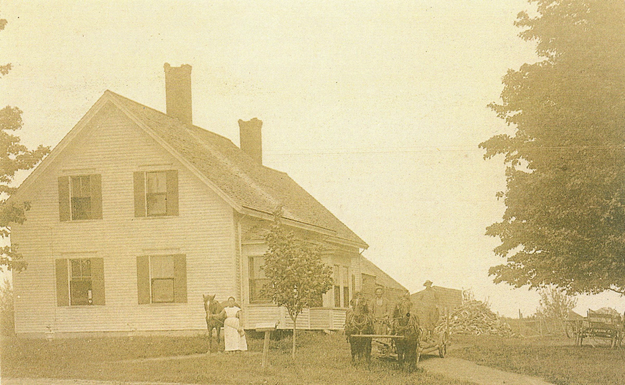 Ebenezer P. French Farm, built c. 1824. In photo: Possibly Alice and Fred Robinson with other man. c. 1910Photograph Details