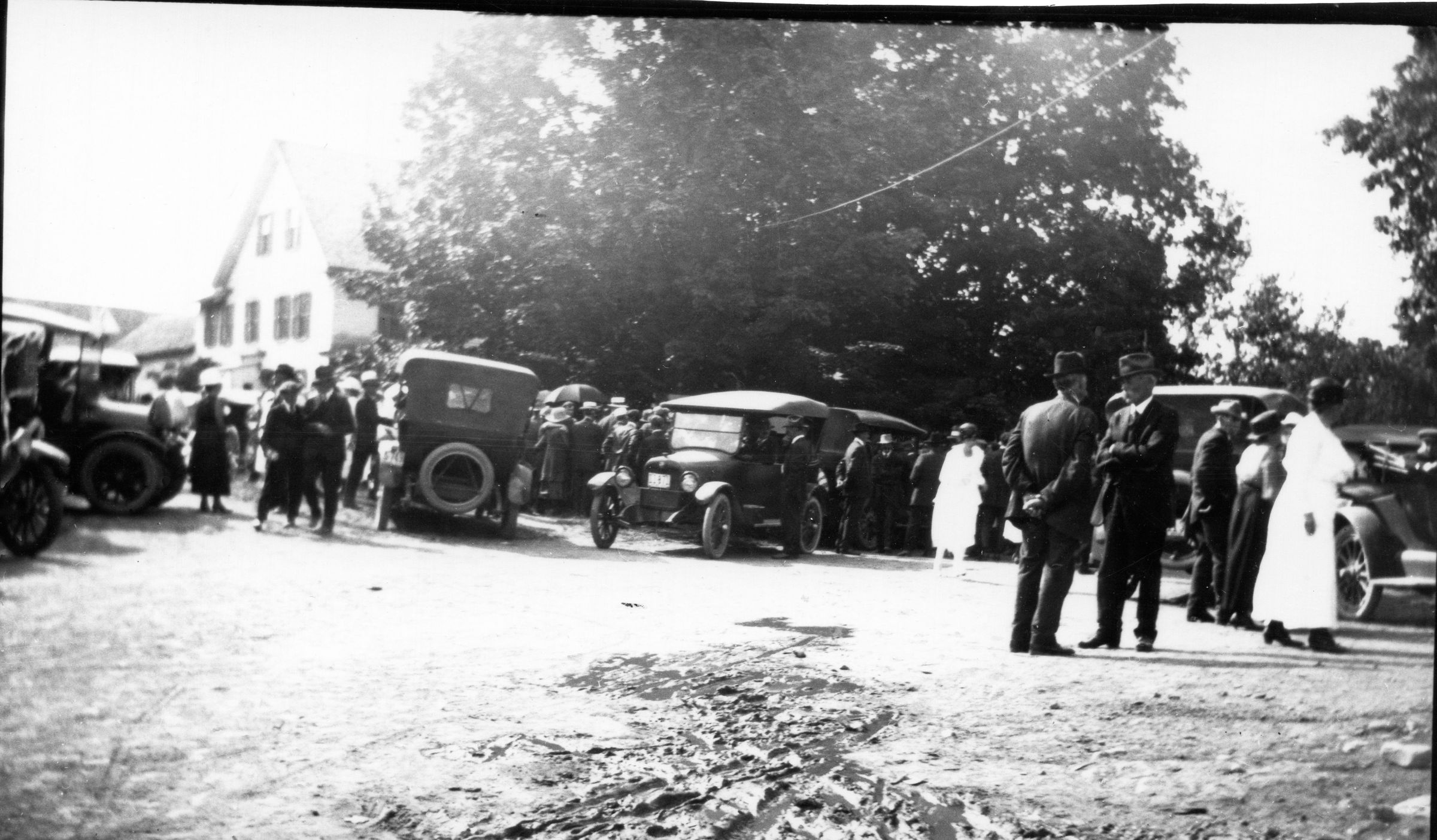 Exeter Corners possibly during a celebration of Maine's centennial. Estimated year, 1920.Photograph Details