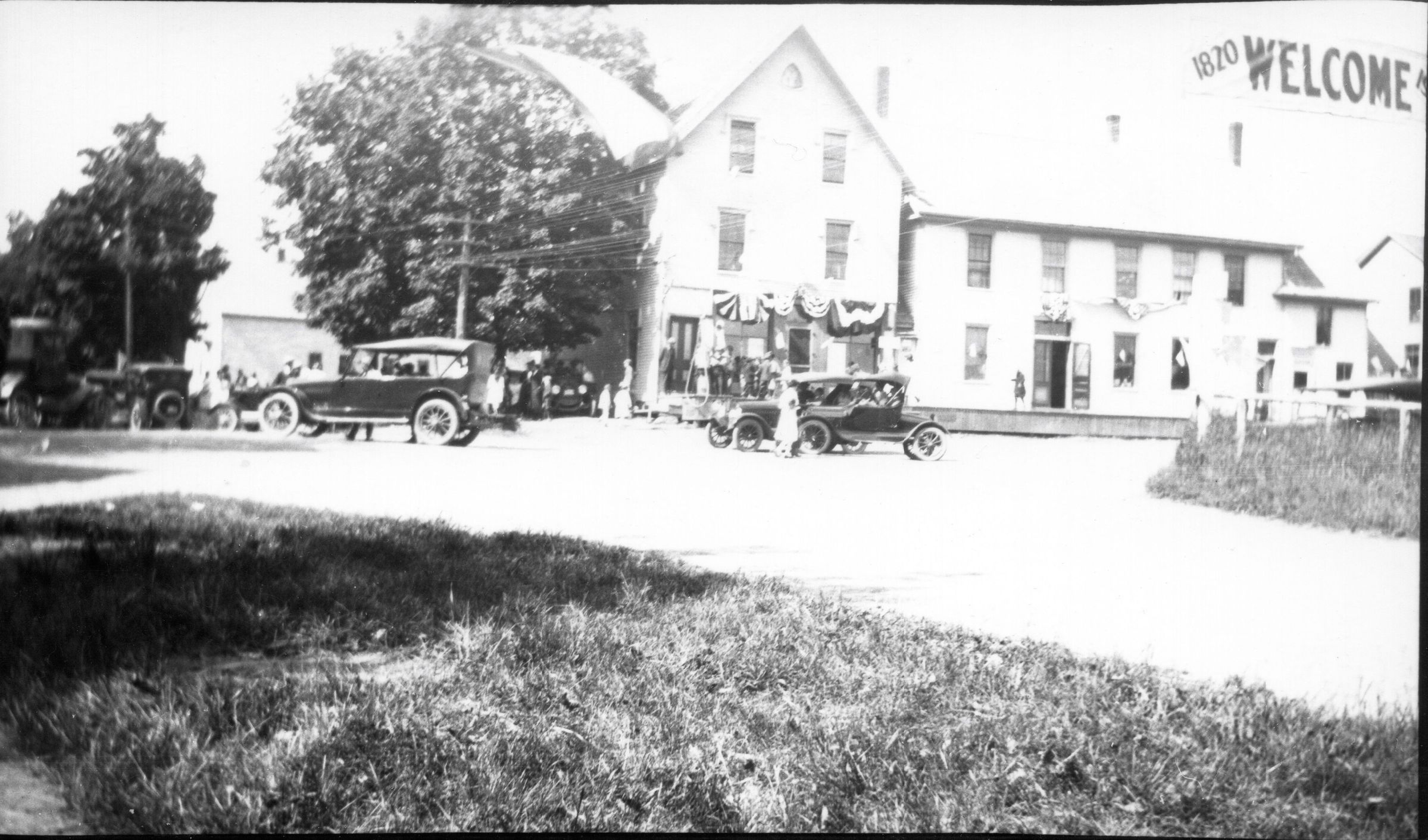 Exeter Corners possibly during a celebration of Maine's Centennial. 1920?Photograph Details