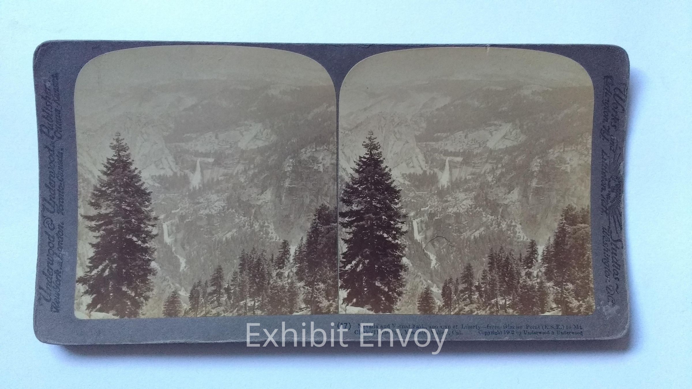 Nevada and Vernal Falls and Cap of Liberty-from Glacier Point (E.S.E.) to Mt. Clark (11,250 ft.), Yosemite Valley, California. Part of YP Discovery Kit