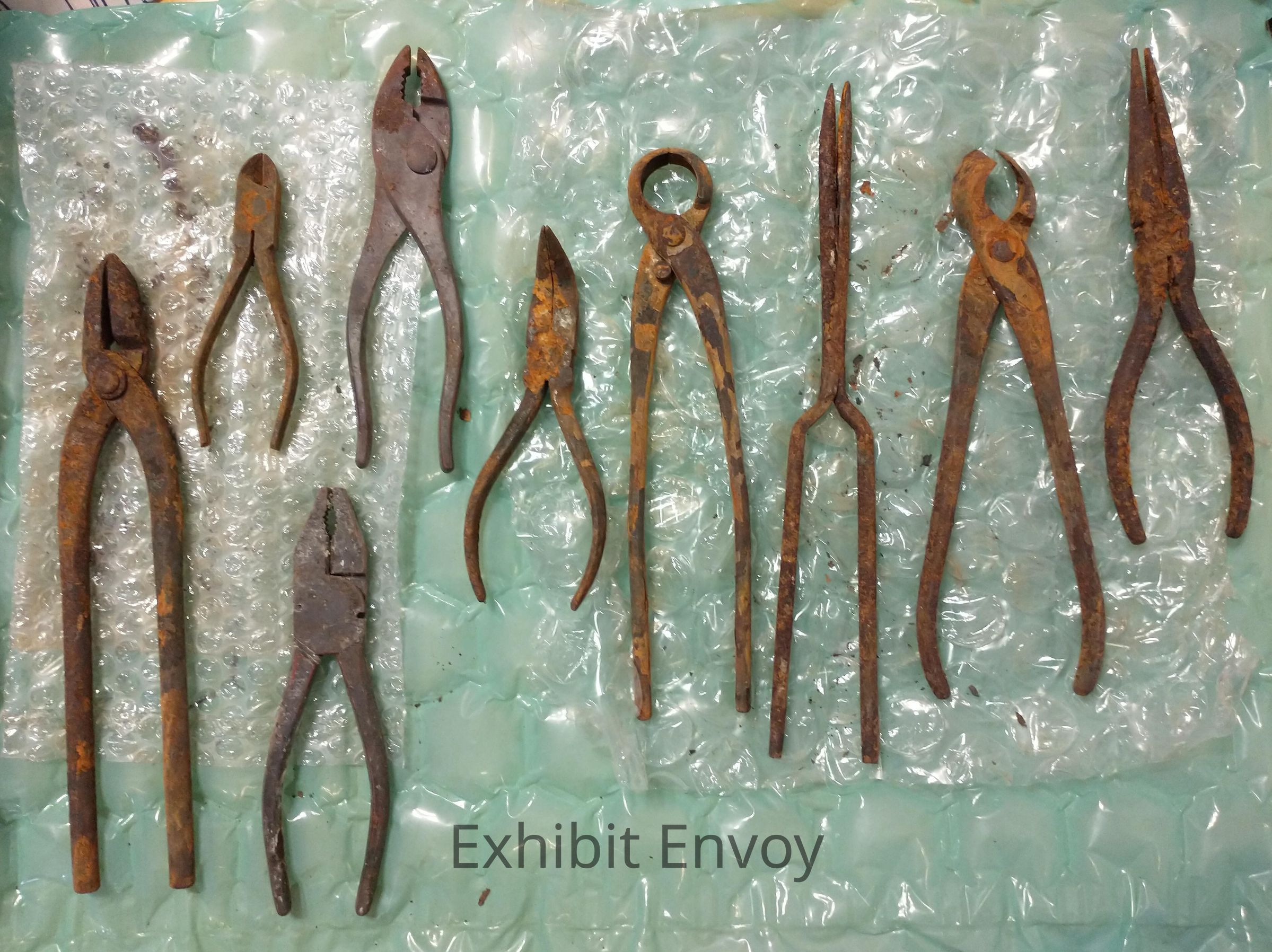 These objects are curiosities, and also remnants of something horrific. We are curious about the way they’ve been transformed by obliteration, something formed and silenced through chemical change. I pay close attention to the ridges and lines left by fire-induced rust. I imagine how the flame curled around each object, visualizing how heat could render such exceptional patterns. – Christy Heron-Clark