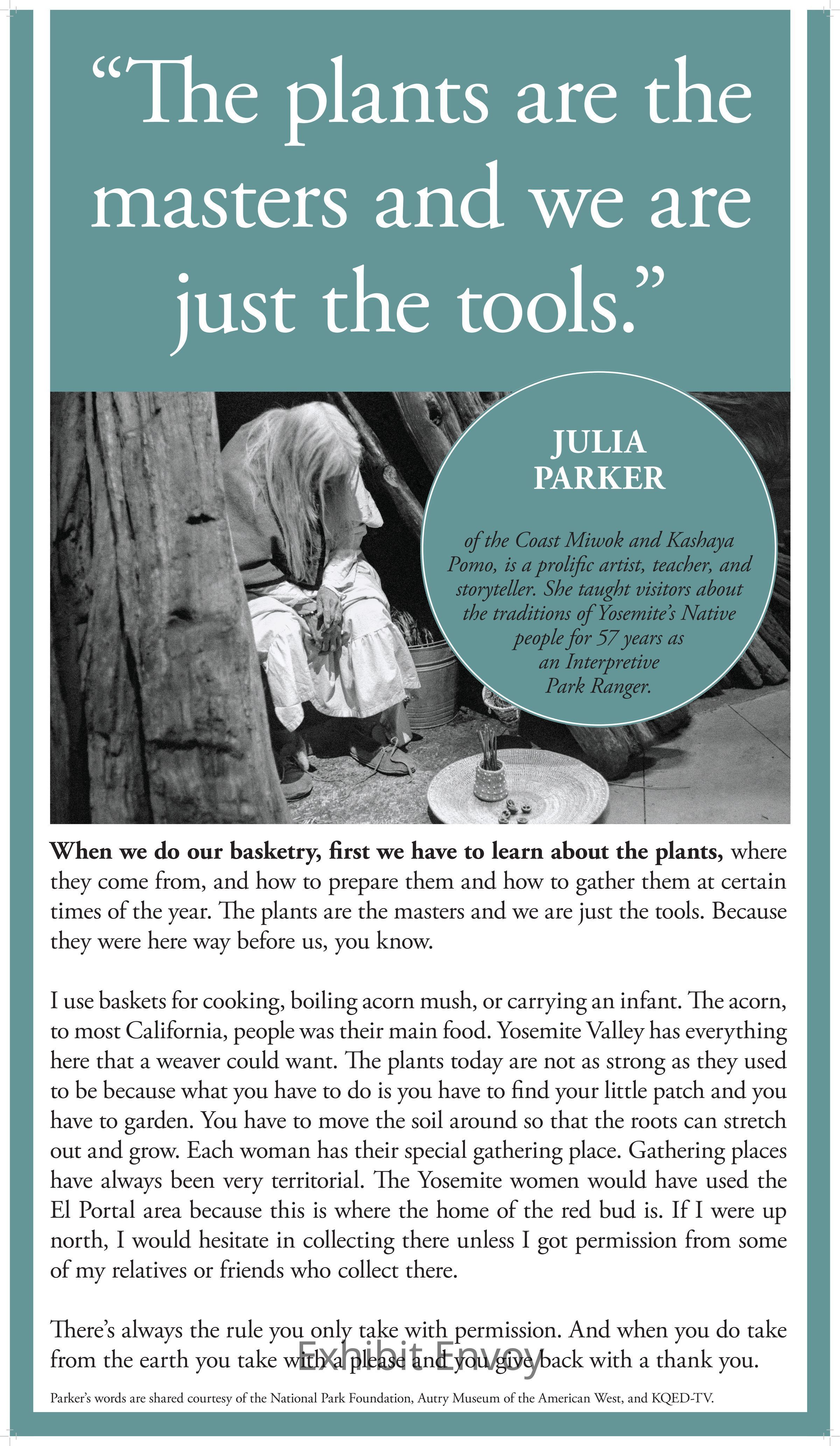 Julia Parker of the Coast Miwok and Kashaya Pomo, is a prolific artist, teacher, and storyteller. She taught visitors about the traditions of Yosemite’s Native people for 57 years as an Interpretive Park Ranger.