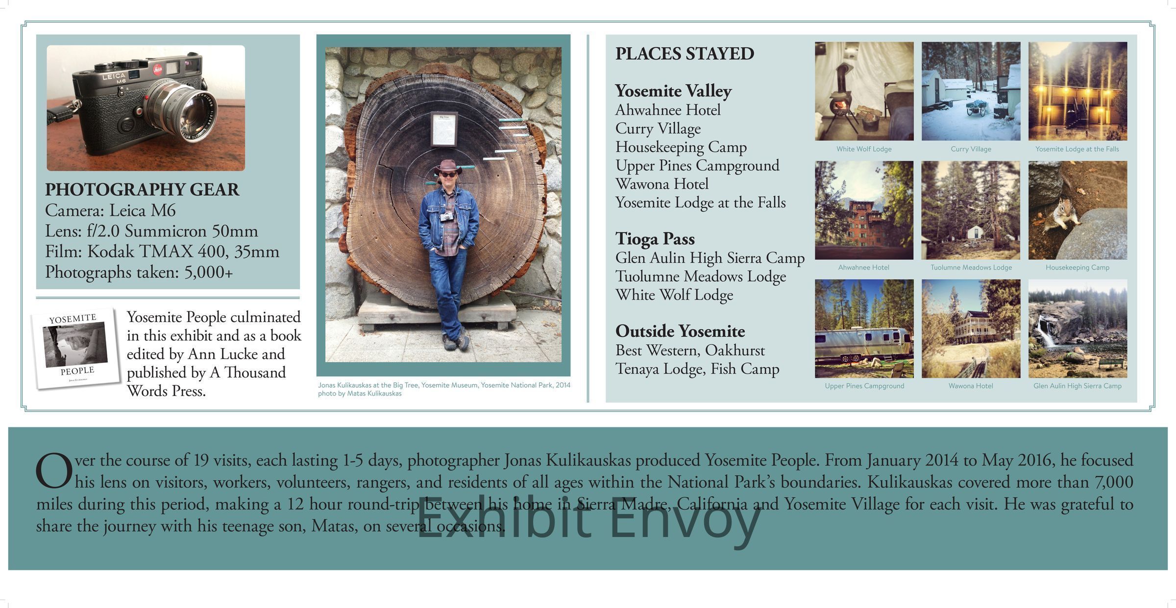Over the course of 19 visits, each lasting 1-5 days, photographer Jonas Kulikauskas produced Yosemite People. From January 2014 to May 2016, he focused his lens on visitors, workers, volunteers, rangers, and residents of all ages within the National Park’s boundaries. Kulikauskas covered more than 7,000 miles during this period, making a 12 hour round-trip between his home in Sierra Madre, California and Yosemite Village for each visit. He was grateful to share the journey with his teenage son, Matas, on several occasions.
