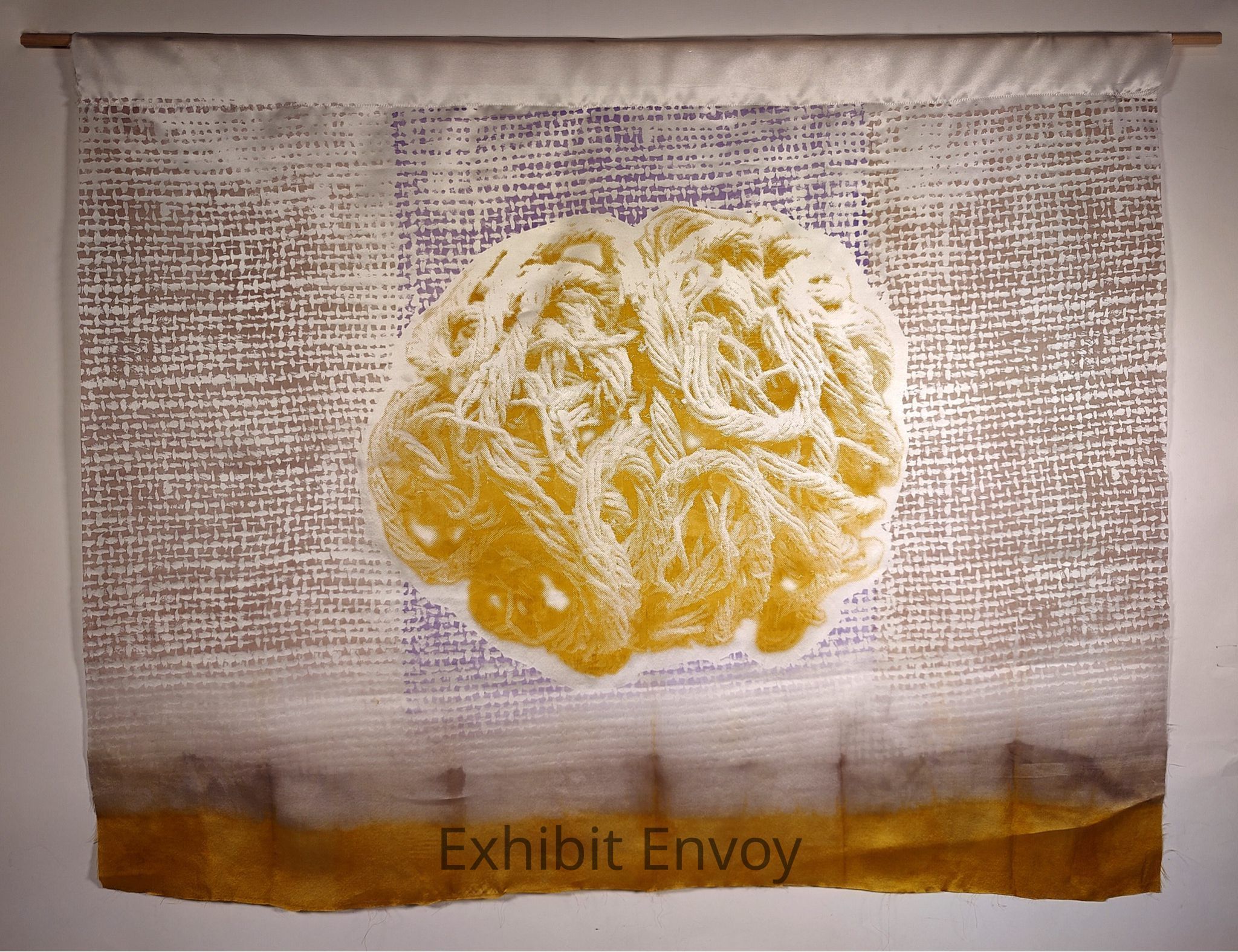 Dye, and screen printed photo screens on silk, sewing , wooden dowel.