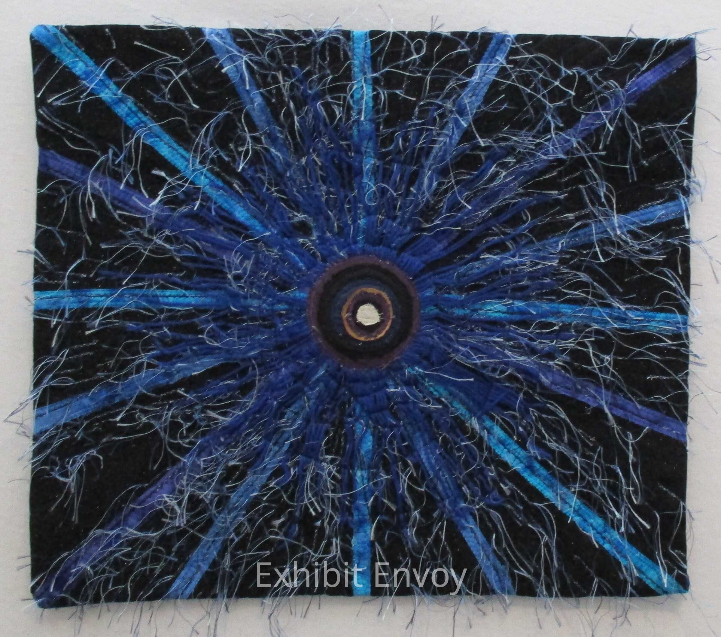 Science and scientific research in California push the learning envelope. World renowned universities and research facilities are at the forefront of many new discoveries. This quilt was created in a collaboration between artists and UCSC PhD physics candidates (2018-2019). It was inspired by experiments done in Large Hadron Colliders. When subatomic particles are smashed together, predictable patterns and colors are created. This facilitates the study of dark matter in the universe.