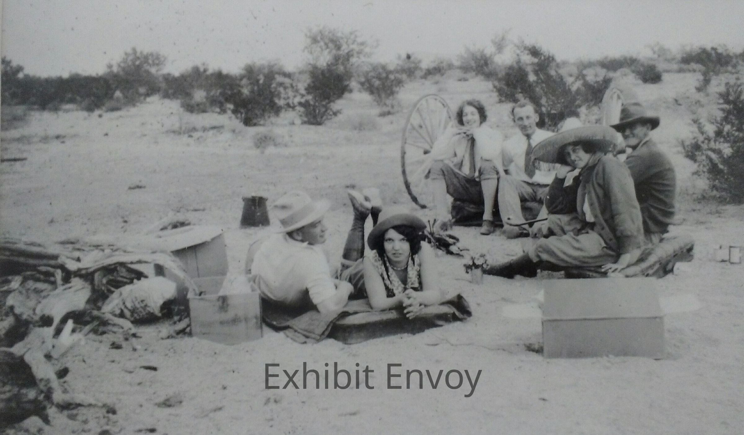 Camping at the Hayfield Ranch, 1928. Henry, Averye, Mickey, Bill, Susie (in sombrero) and the cowboy Nelson. Photographer: Unknown. Susie Keef Smith Collection.
