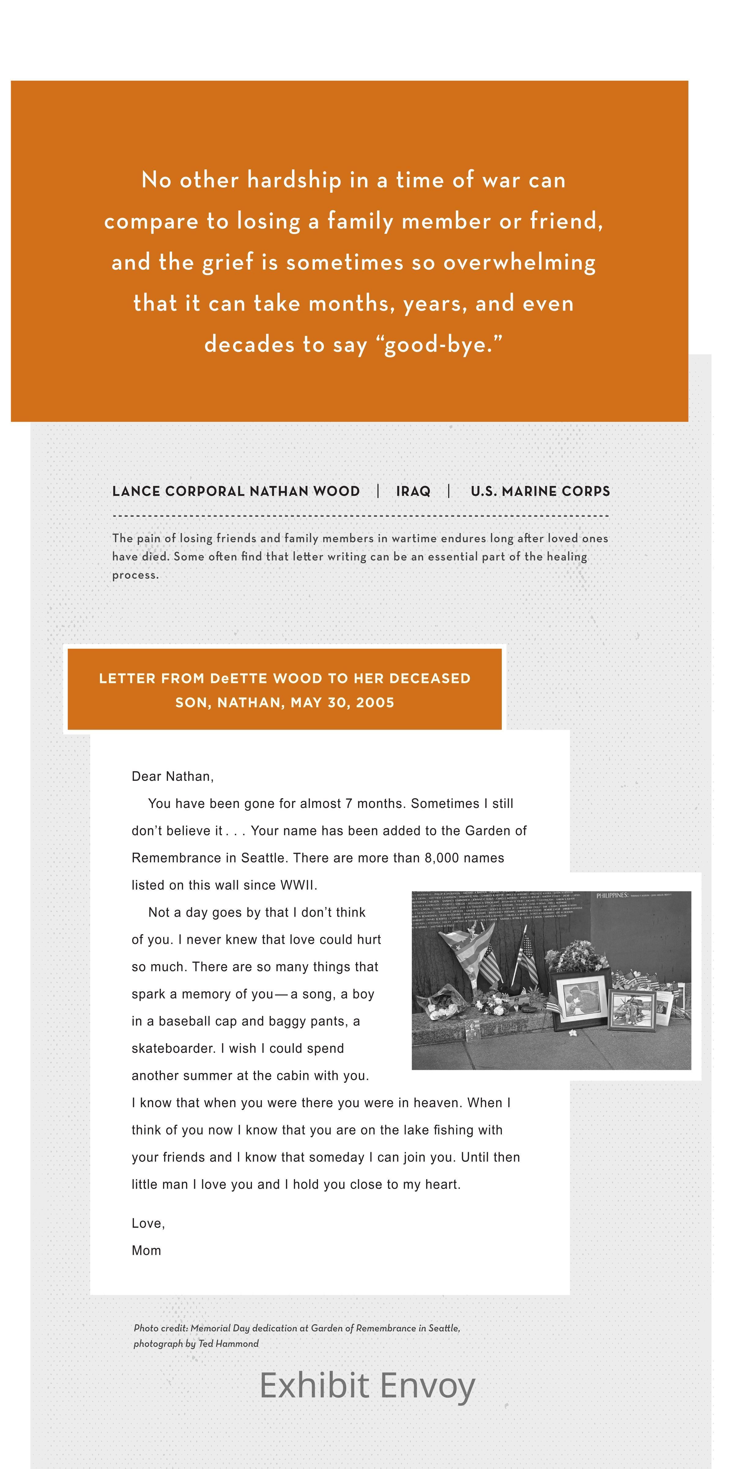 Section: Enduring Loss: The Costs of War DeEtte Wood, Mother of Marine Nathan Wood / 2005
