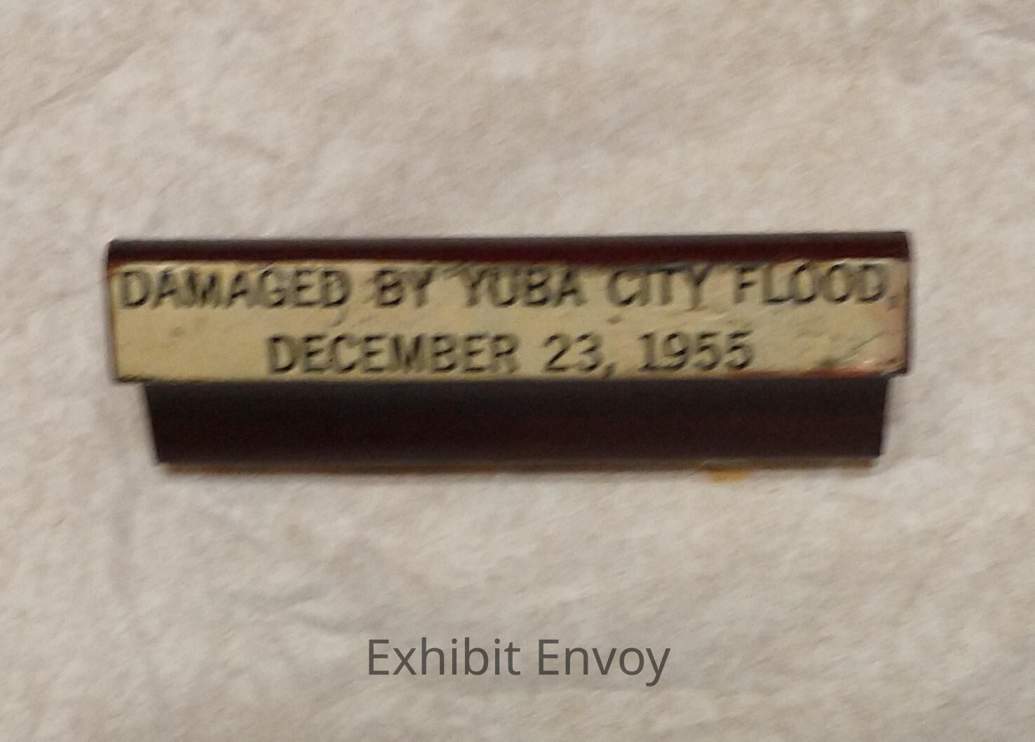 Natural disasters and epidemics often impact essential government services, including mail delivery. This rubber stamp was used on documents damaged by the 1955 flood in Yuba City. Its counterpart stamp, not displayed here, read “Delayed by Yuba City Flood.”