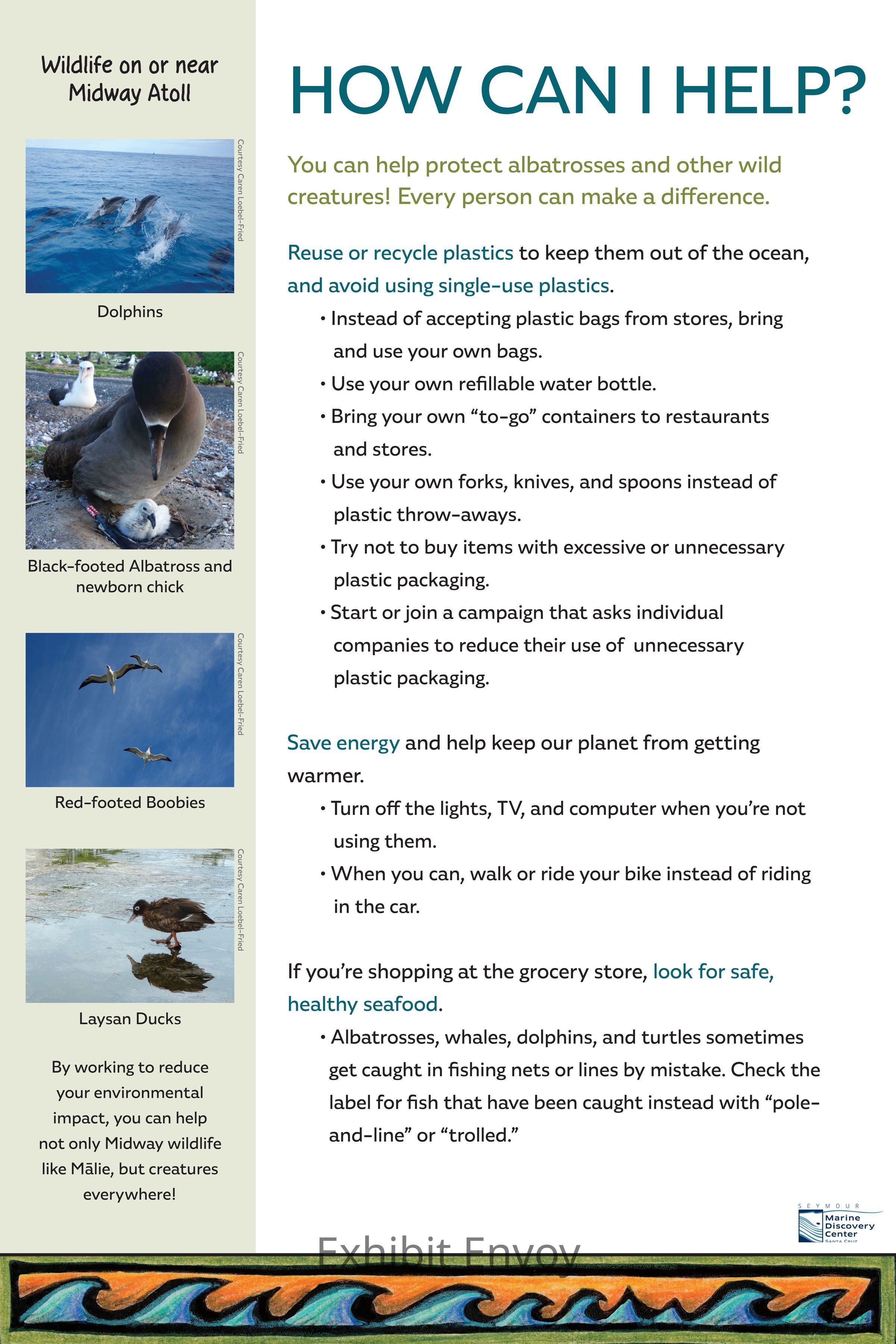 List of ways that children and families can help protect wildlife; fitting conclusion for exhibit. Text panel for "Albatross: Life on the Wind and Sea"Collection