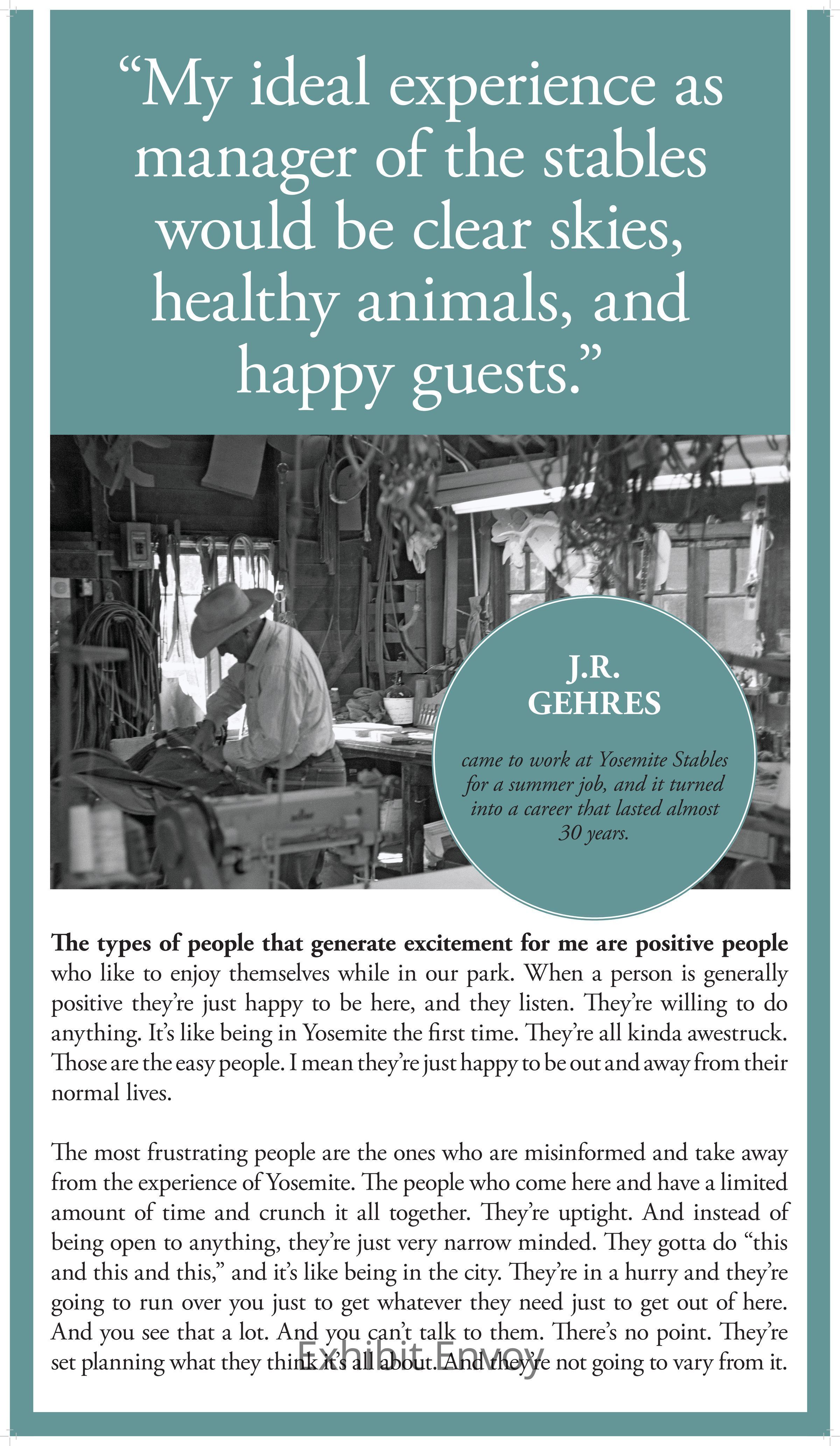 J.R. Gehres came to work at Yosemite Stables for a summer job, and it turned into a career that lasted almost 30 years.