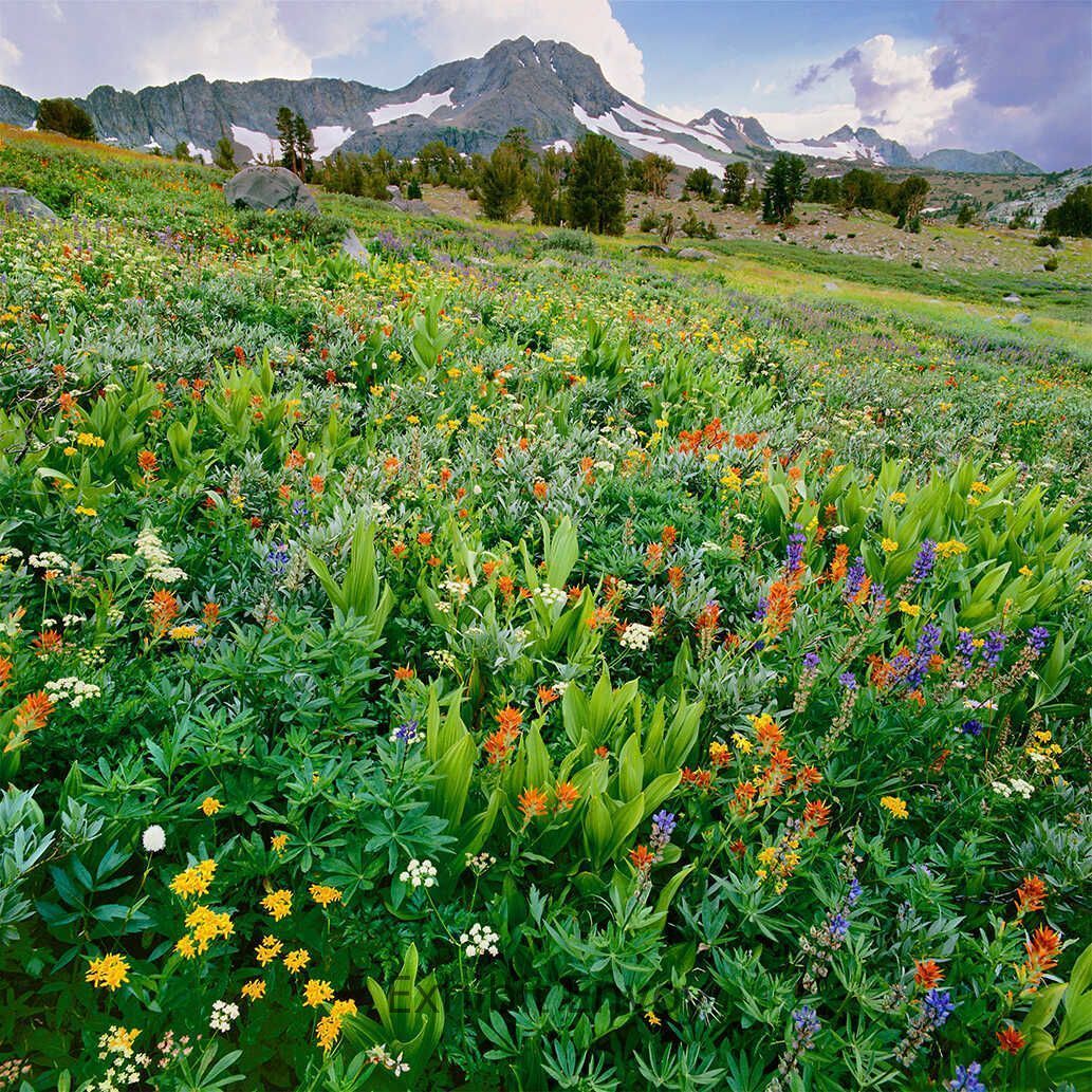 Large Variety of Wildflowers and Roundtop Mountain Peak