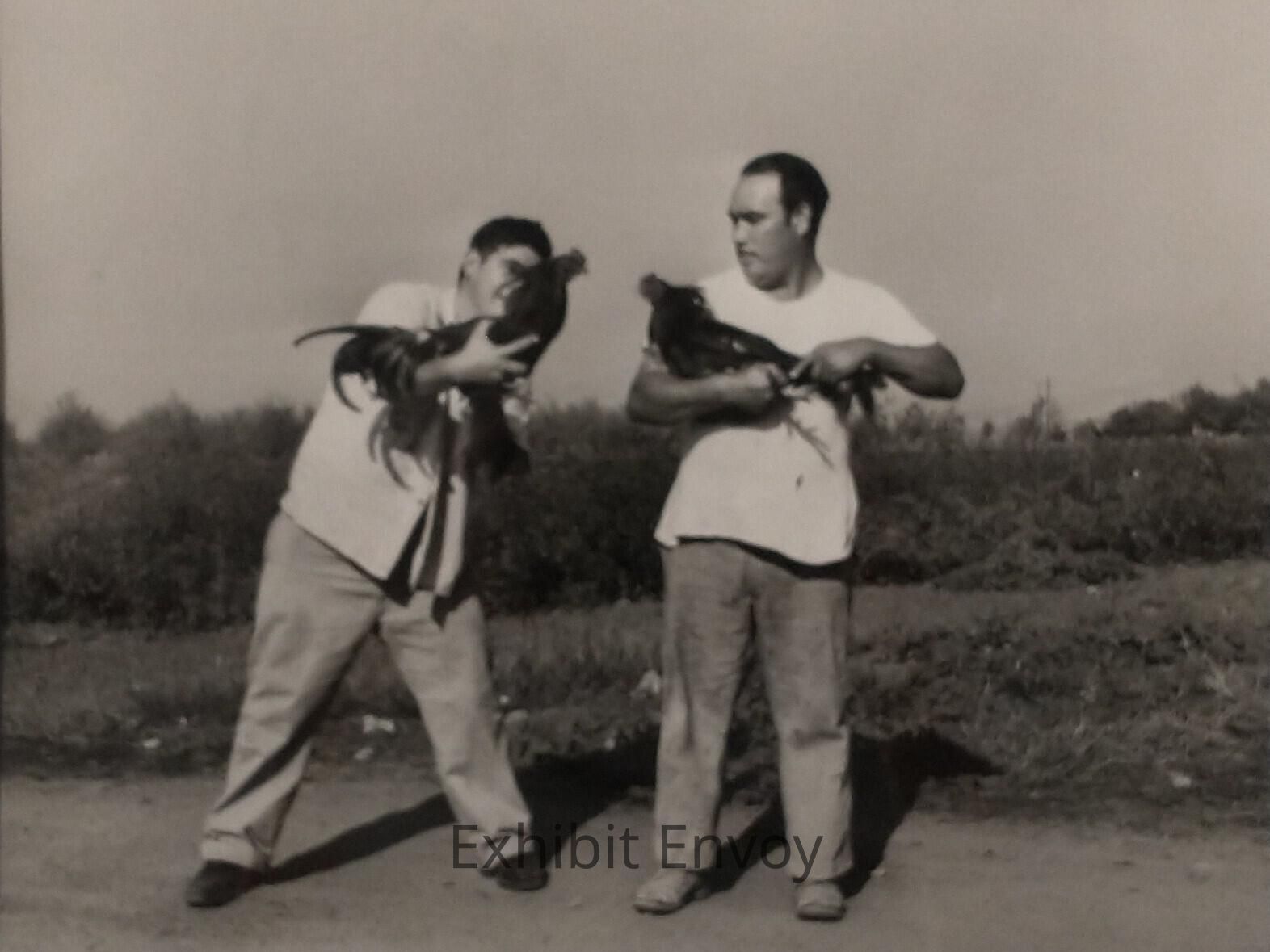 Other cultures shared the enthusiasm for cockfighting. These Latino farm workers primed their birds for a contest they hosted.