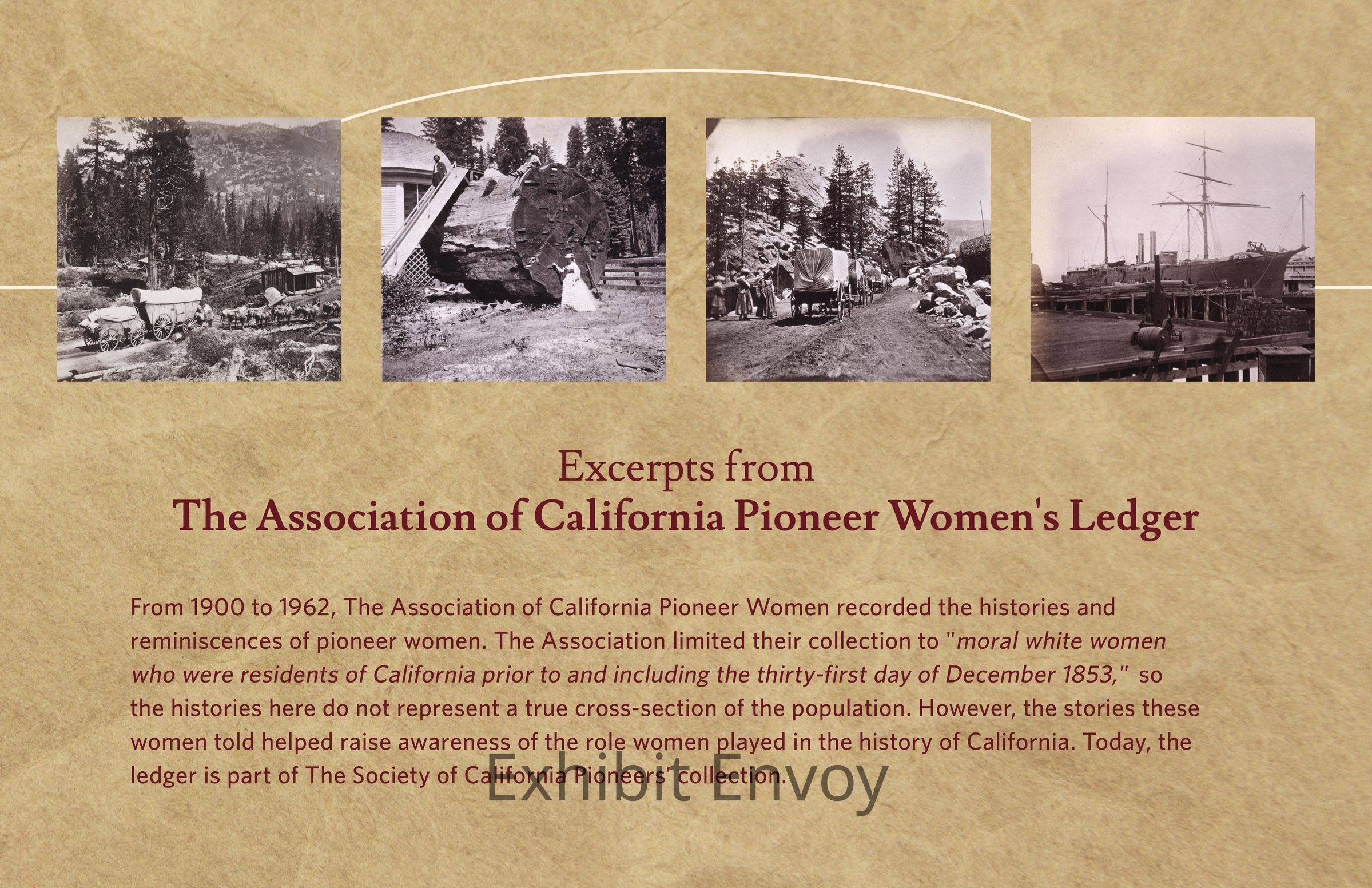 Interactive with reproductions and transcripts of pages from the original Association of California Pioneer Women ledger. 12 laminated double-sided pages with 3 large rings.Collection