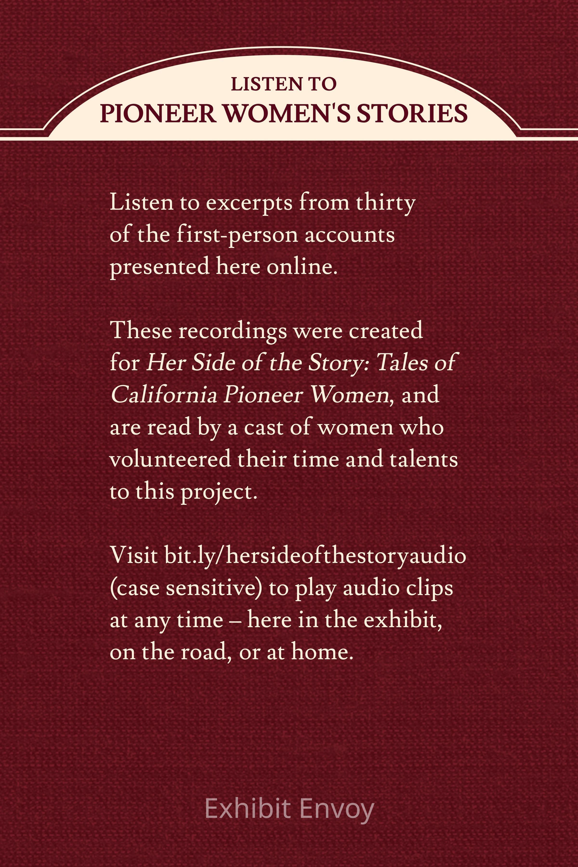 Intro or Conclusion. Panel to direct visitors to audio versions of stories; optional to install.