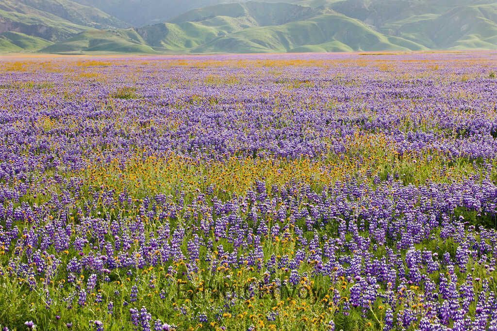 Lupine and Fiddleneck seen from Interstate 5 in the Southern End of the San Joaquin Valley
