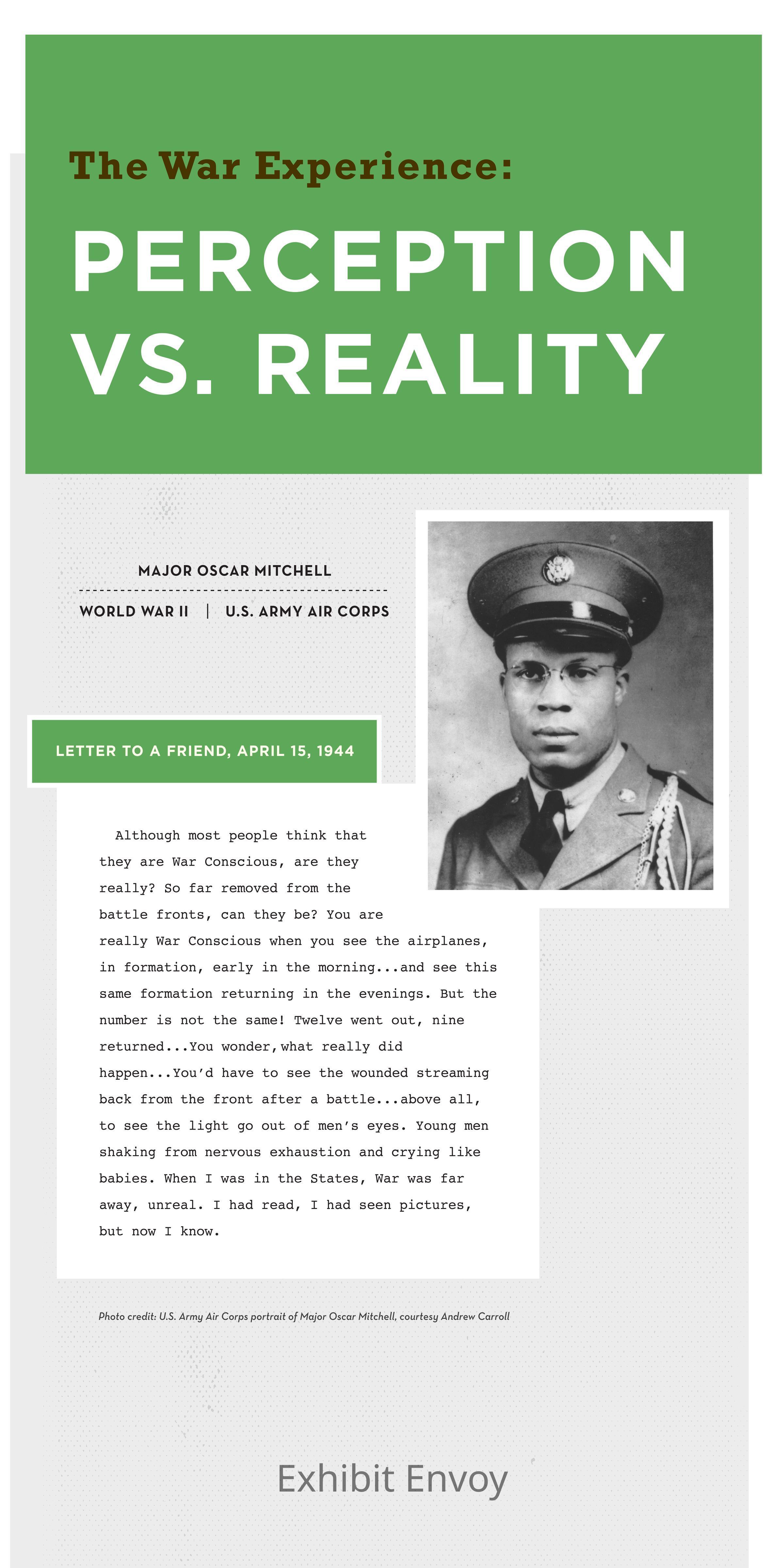 Section: The War Experience: Perception vs. Reality Major Oscar Mitchell / 1944 / Army Air Corps.