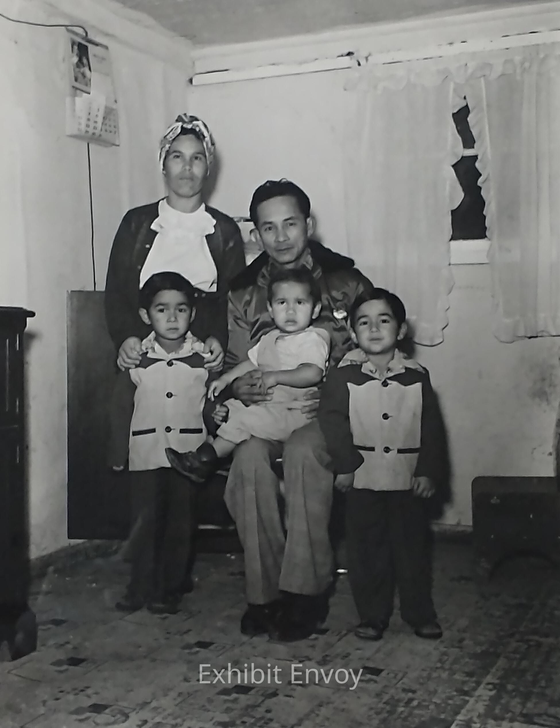 The postwar baby boom afforded Alvarado many opportunities to use his camera. In this image of a Mexican mother and Filipino father, their two older children in little suits, Alvarado captured the couple's trust in the American dream for a better future.