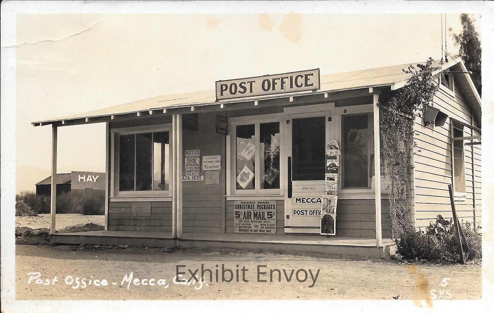 "Post Office - Mecca, Calif." Postcard sent from Susie to Lula. Photo taken by Susie.