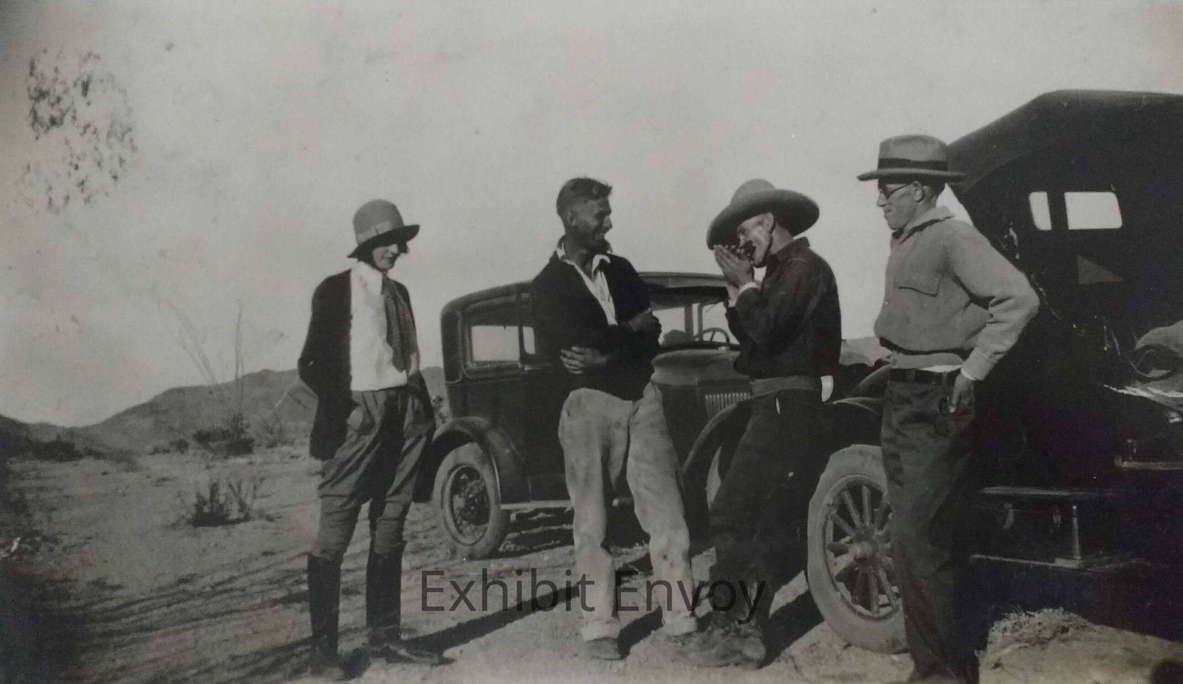 Mickey Pinney, Ed Baker, the cowboy W.M. Nelson and Raymond Hopkins at Aztec Wells, 1929.