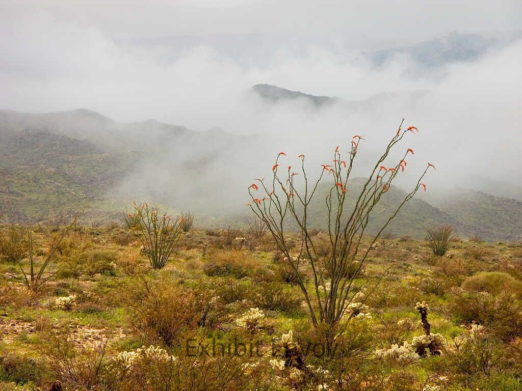 Ocotillo (Fonquieria splendens) and Rare Desert Fog; "100 Year Bloom," 2005 El Nino EventEntry/Object ID