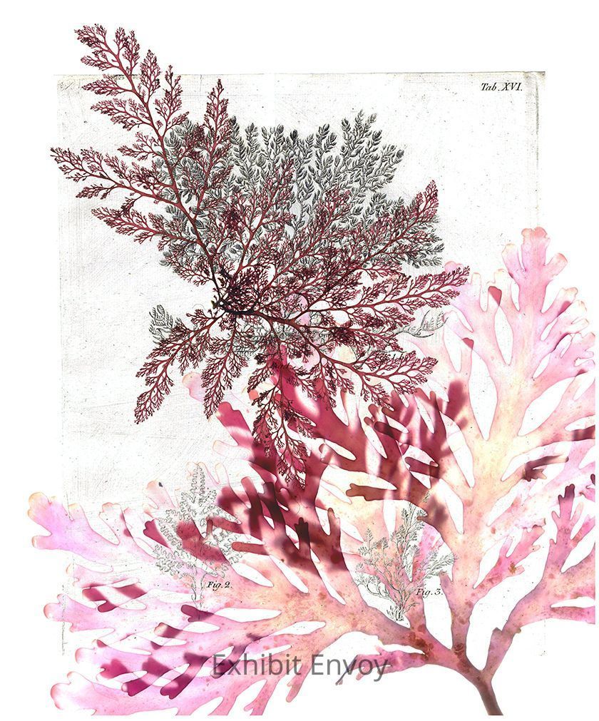 Plocamium and Osmundea incorporating an illustration by Samuel Gottlieb Gmelin from Historia Fucorum (1768). Like other red algae, these bright and colorful seaweeds belong to the Rhodophyta (red) division.