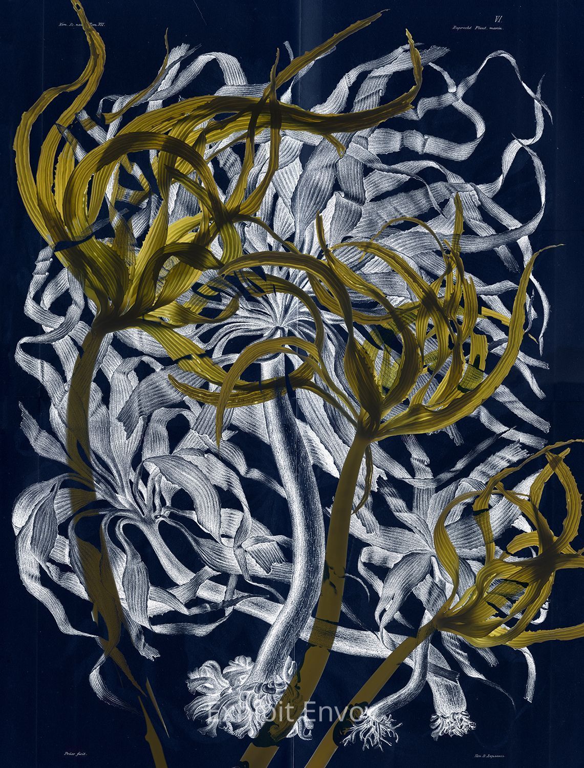 Postelsia palmaeformis on an illustration by Franz Josef Ruprecht. The sea palm is the only seaweed that makes a stipe stiff enough to combat gravity and stand upright when exposed at low tide. It is still very bendy!