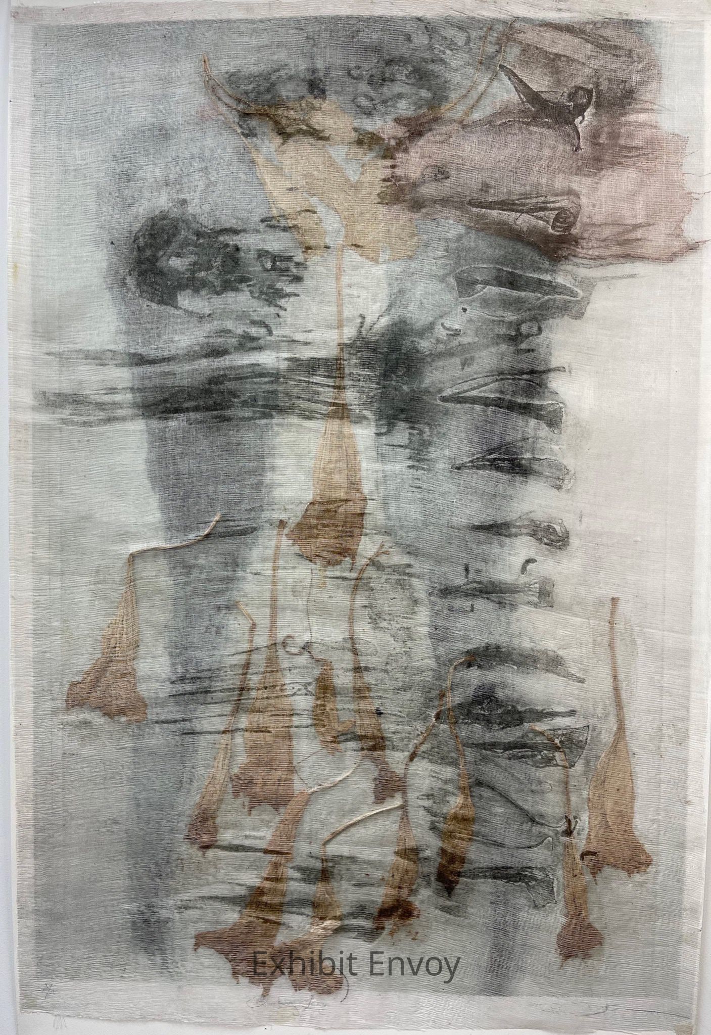 I wade through the tenuous with fragility as vulnerability is the present feeling. The transient informs that all feelings are unknown and incomplete. Epigenetics trigger intuitive knowledge from generations past. The less doctored, the less patently crafted, the more naïve, the more authoritative a print is likely to be. A unique hybrid of methods between printmaking, sewing, drawing and collaging also captures complex unique moment.