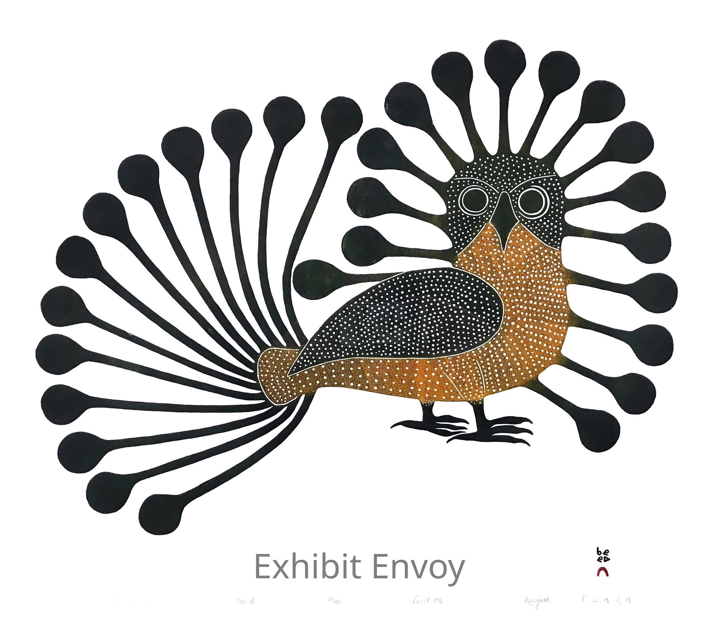 Kenojuak Ashevak was the first woman to be part of the West Baffin Eskimo Cooperative in Cape Dorset. While Ashevak drew various animals, she is well known for her elaborate illustrations of owls. In Inuit culture, the owl is revered as a source of wisdom, and believed to guide spirits of the dead into the afterworld.