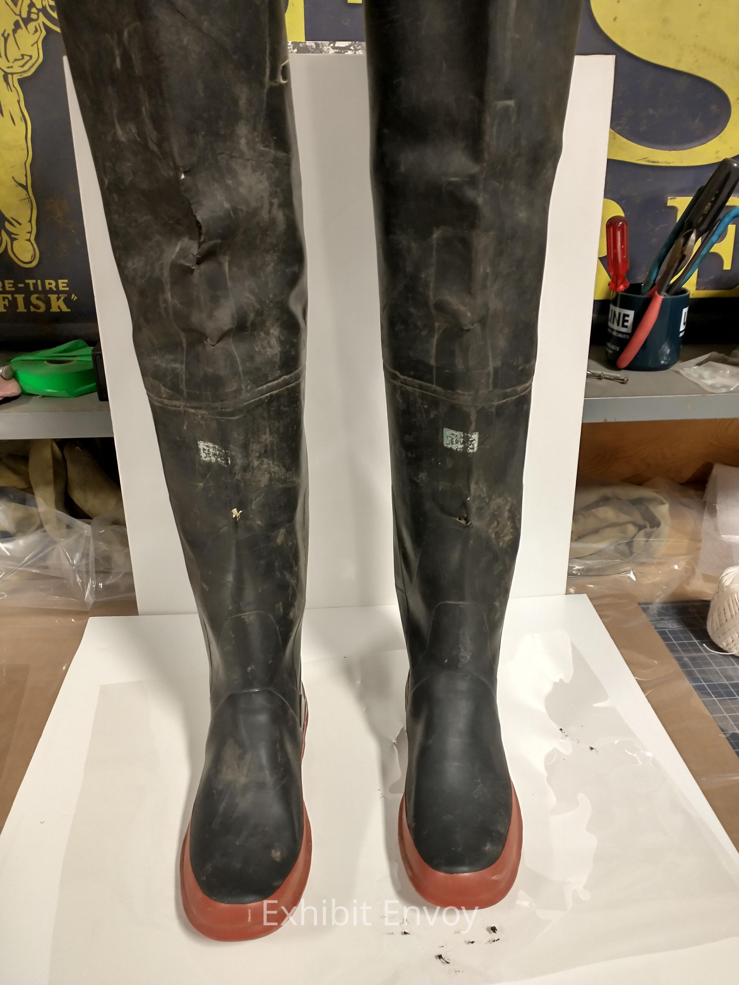 The Red Cross provided Orlin Schuler, Jr. with these black rubber hip boots during the 1955 flood in Yuba City. Schuler was 15 years old at the time of the flood.