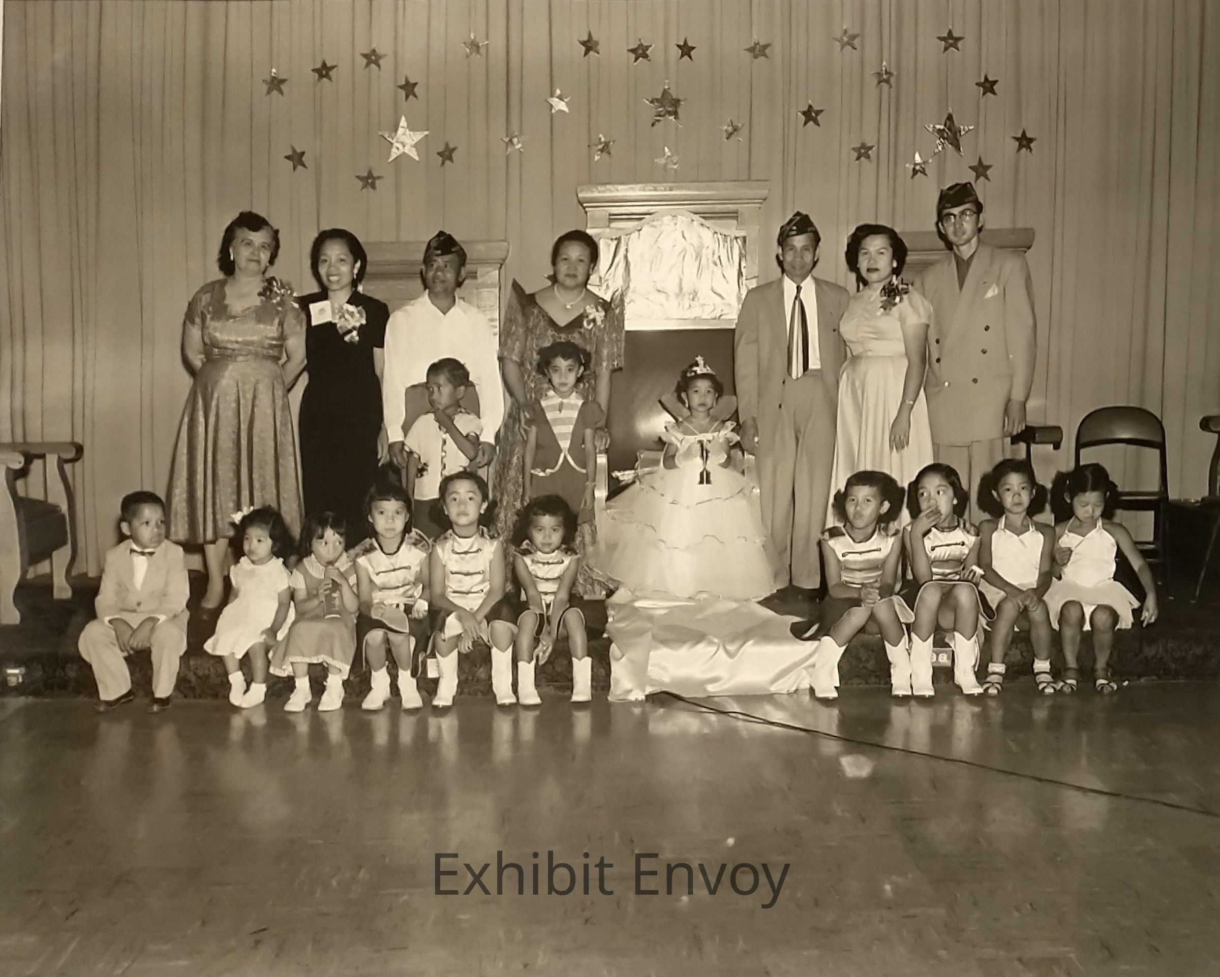 Children's pageants were another source of community pride and cultural preservation. These Filipino American adults and children appeared in a program at American Legion Post 798.