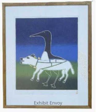 Pudlo Pudlat is an Inuit artist known for depictions of modern technology that brought major changes to his home of far Northern Canada. The artist also drew images inspired by spirits from Inuit folklore. The Inuit People believe both dogs and birds are connected to the spiritual world.