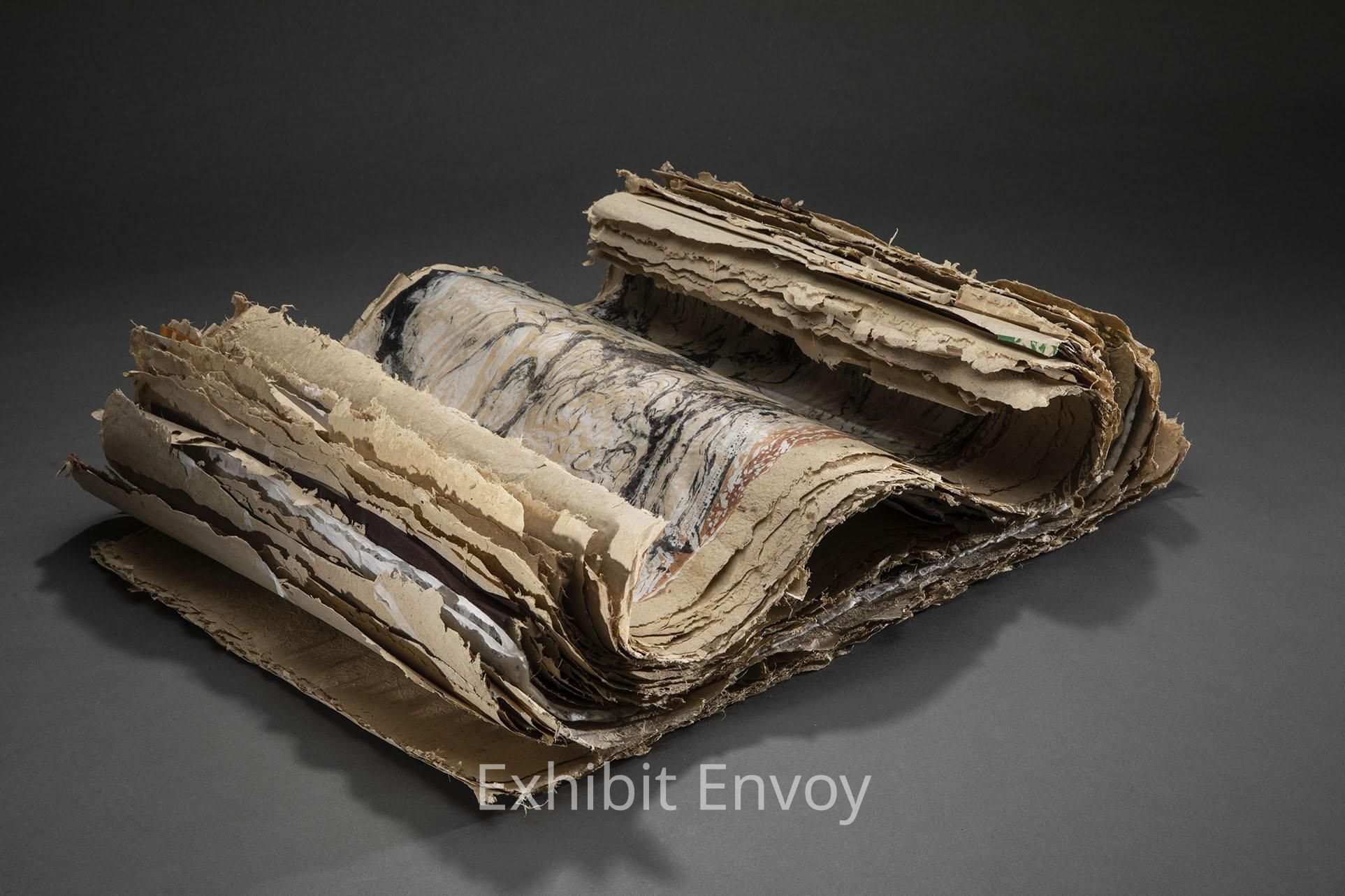 This work is based on two visits, one year apart, to Fagradalsfjall, the recent volcanic eruption in Grindavik, Iceland. Approaching the lava field the first time, after a long hike through a bleakly beautiful landscape, the enormous, black moonscape was heaving, steaming and groaning. The relentless wind grew still as I came to the edge of the heaving pile. Outside sound disappeared, replaced with the creaking and breathing of the lava itself. The thick, crusty, grey/black strata was laced with thin veins of iridescent color. An intimacy developed as I examined the tiny worlds of experience that lay within the huge, volcanic mass.