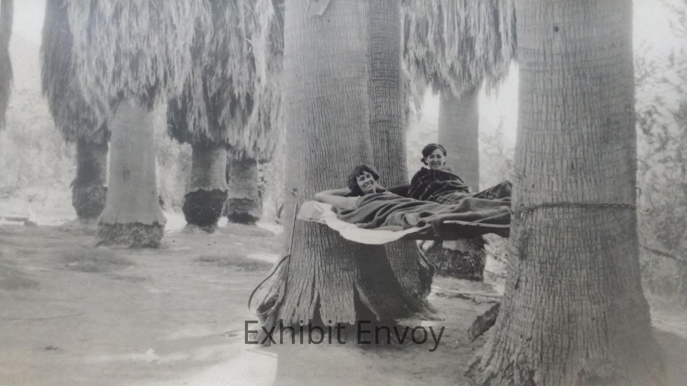 Susie and Lula lounge in hammocks at Corn Springs, 1930. Note the rifle within easy reach.
