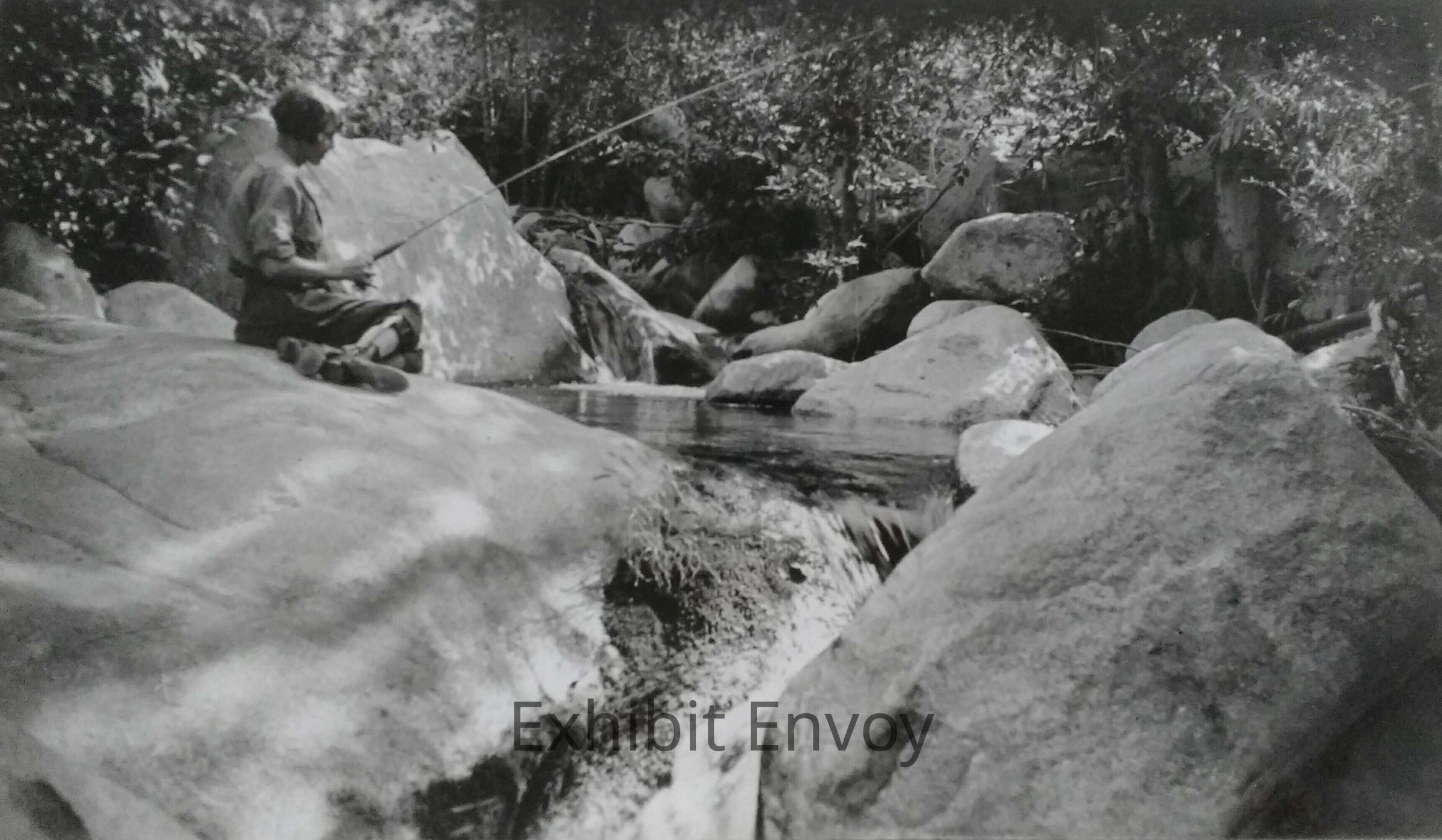 Susie with fishing pole at Snow Creek, north of Palm Springs. The stream was since diverted by the Desert Water Agency and you can no longer fish at Snow Creek.