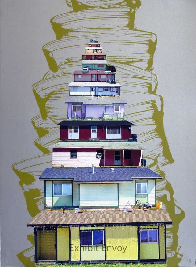 This work depicts affordable housing provided by the U.S. Department of Housing and Urban Development (HUD) on the Crow Indian Reservation. The colors of the homes were not chosen by the residents, but by the government. Wendy Red Star’s father speculated that the colors of the houses were the result of the government buying the cheapest paint available.